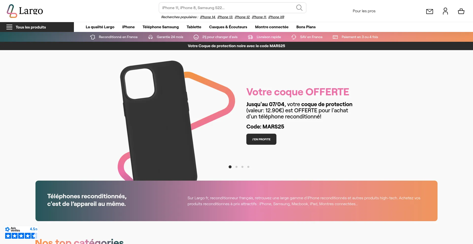 Largo, reconditionneur français et labellisé | Téléphones reconditionnés en France & High-Tech | Garantis jusqu'à 24 mois | Livraison gratuite 24h| 21 jours pour tester | ...