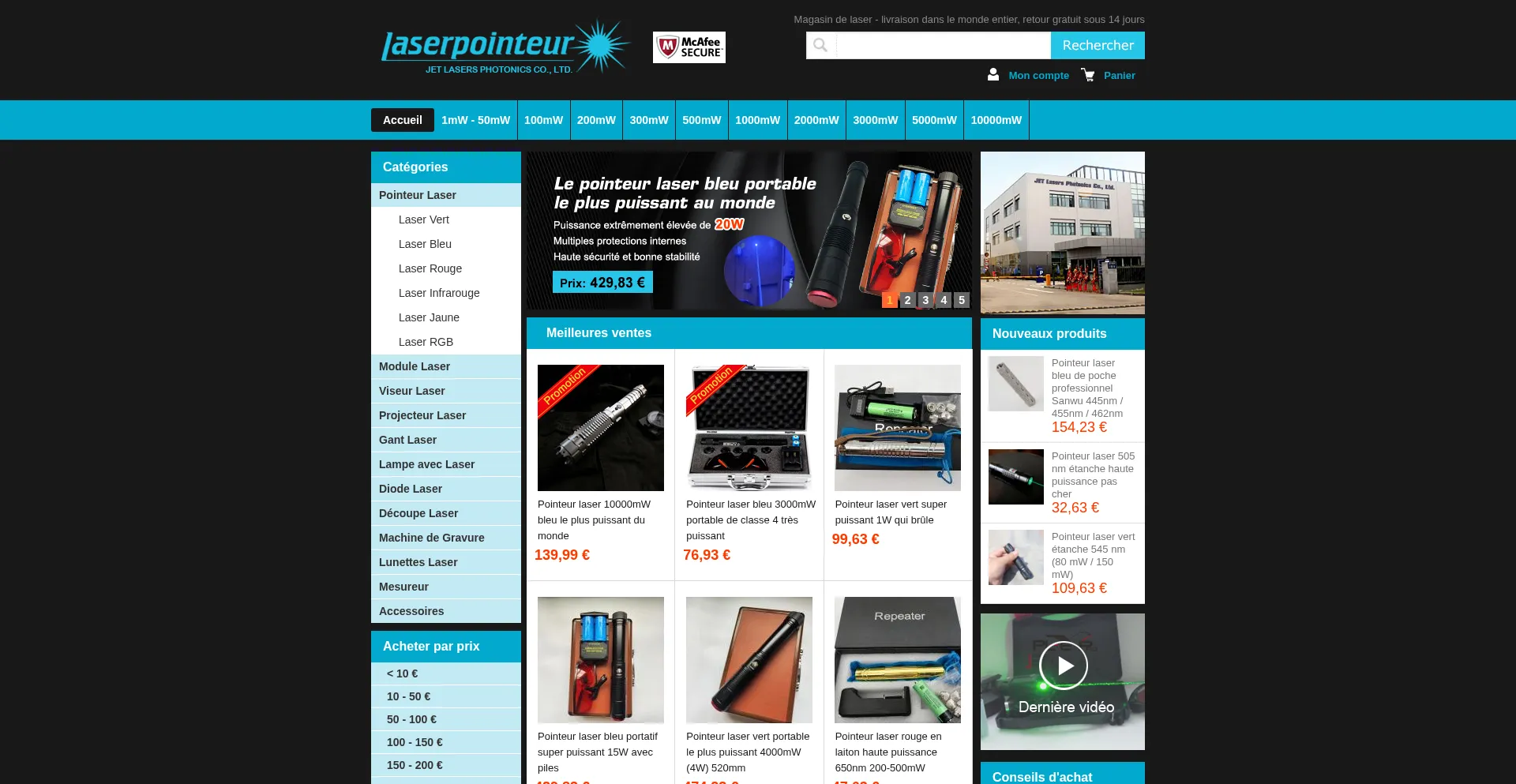 Bienvenue sur notre magasin de laser en ligne - nous sommes leader fabricant mondial offrant toutes sortes de pointeurs laser et autres produits connexes.