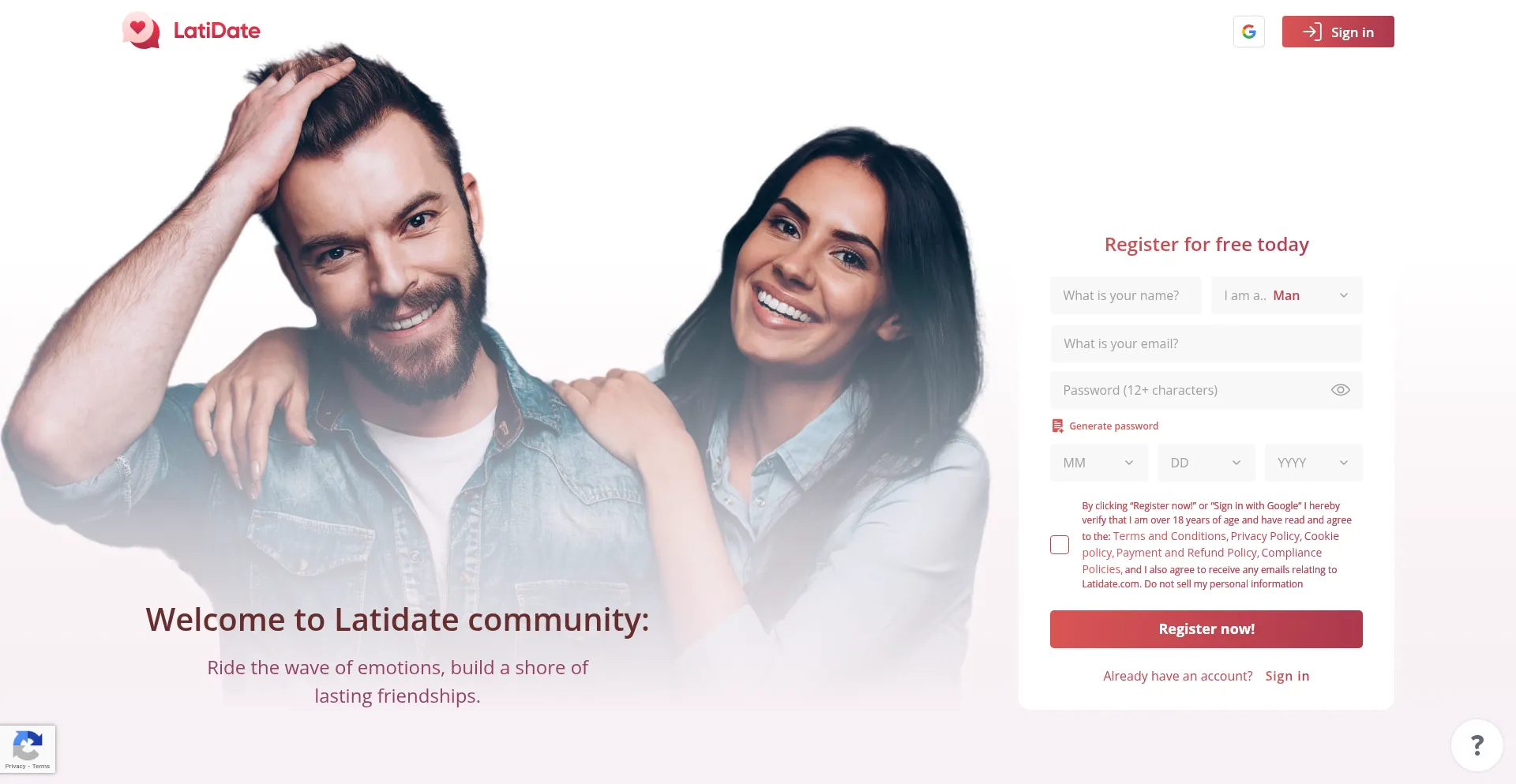 该网站实现数据收集表单,请求个人信息,包括姓名、电子邮件地址、电话号码或其他敏感详细信息。用户应验证 latidate.com 的合法性并在提交个人数据前查看隐私政策。
