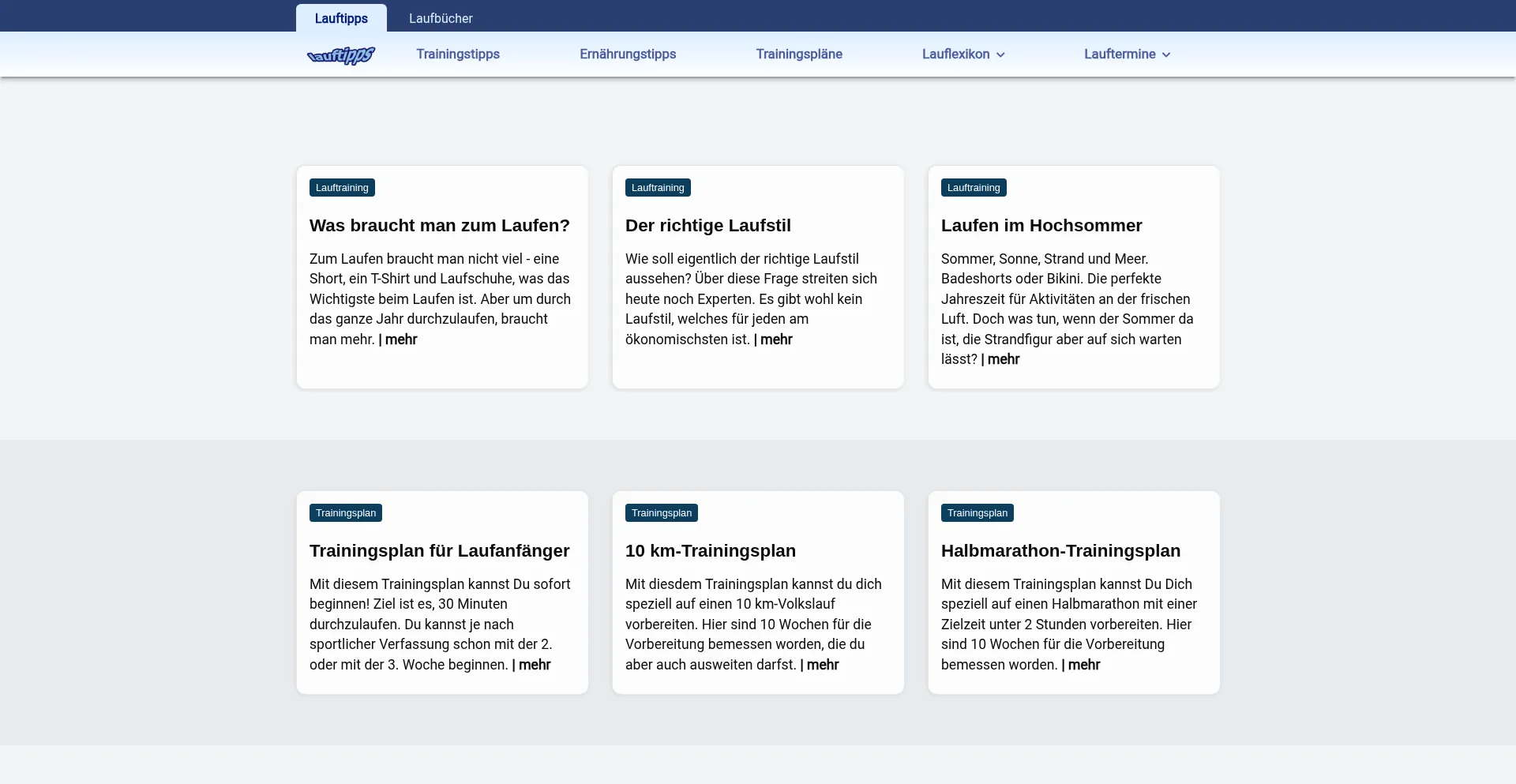 Trainingstipps und Trainingspläne rund ums Laufen. Für den Marathon, Halbmarathon und weitere Distanzen. Mit Lauflexikon und einer Übersicht zu Laufveranstaltungen.