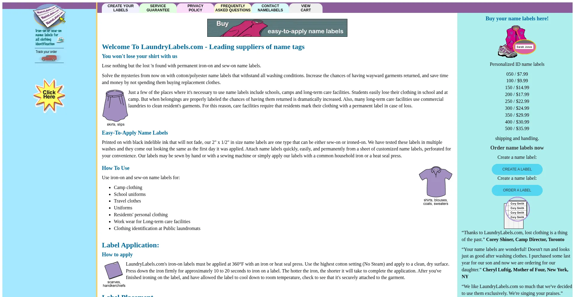 Ensure your clothes are never lost in laundry or camp, by using our affordable iron on clothing labels. Call 1-866-952-2357 for fabric name tags for clothes.