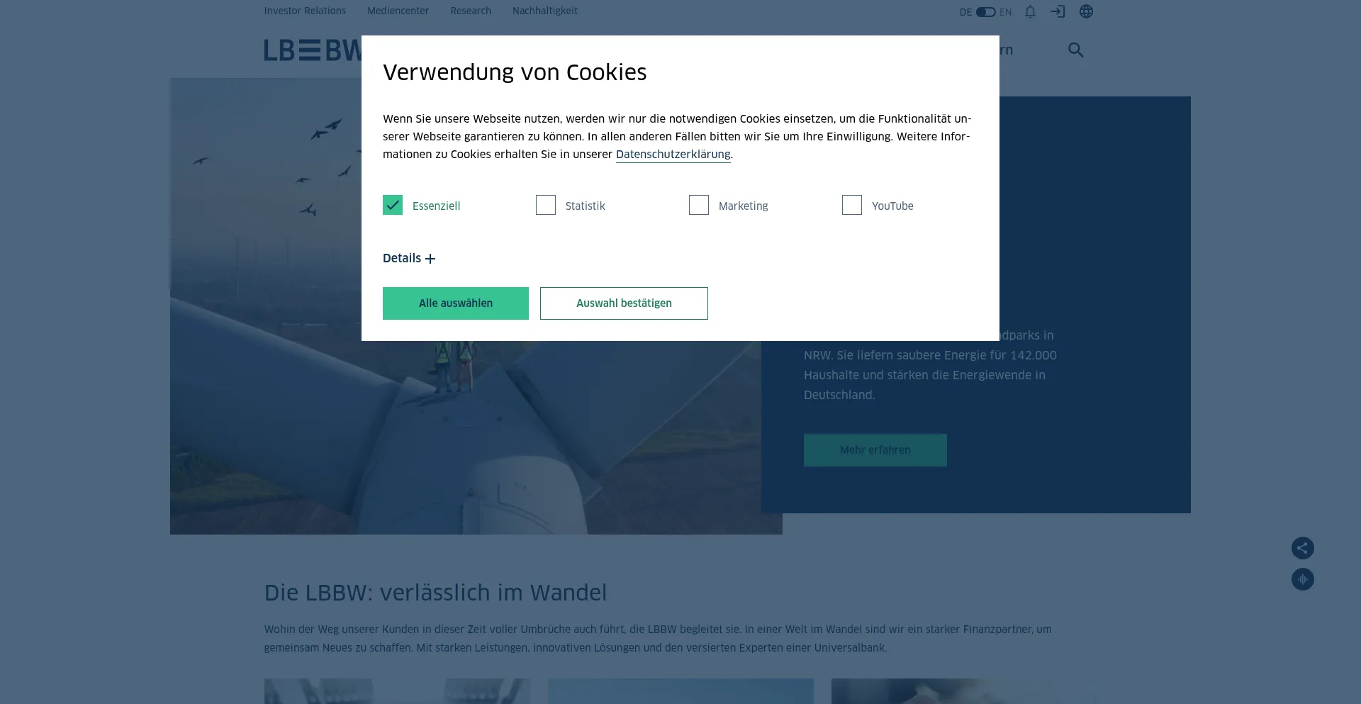 网站上存在社交媒体链接表明 lbbw.de 在社交媒体上维护官方账户,这是可信度和参与度的积极信号。