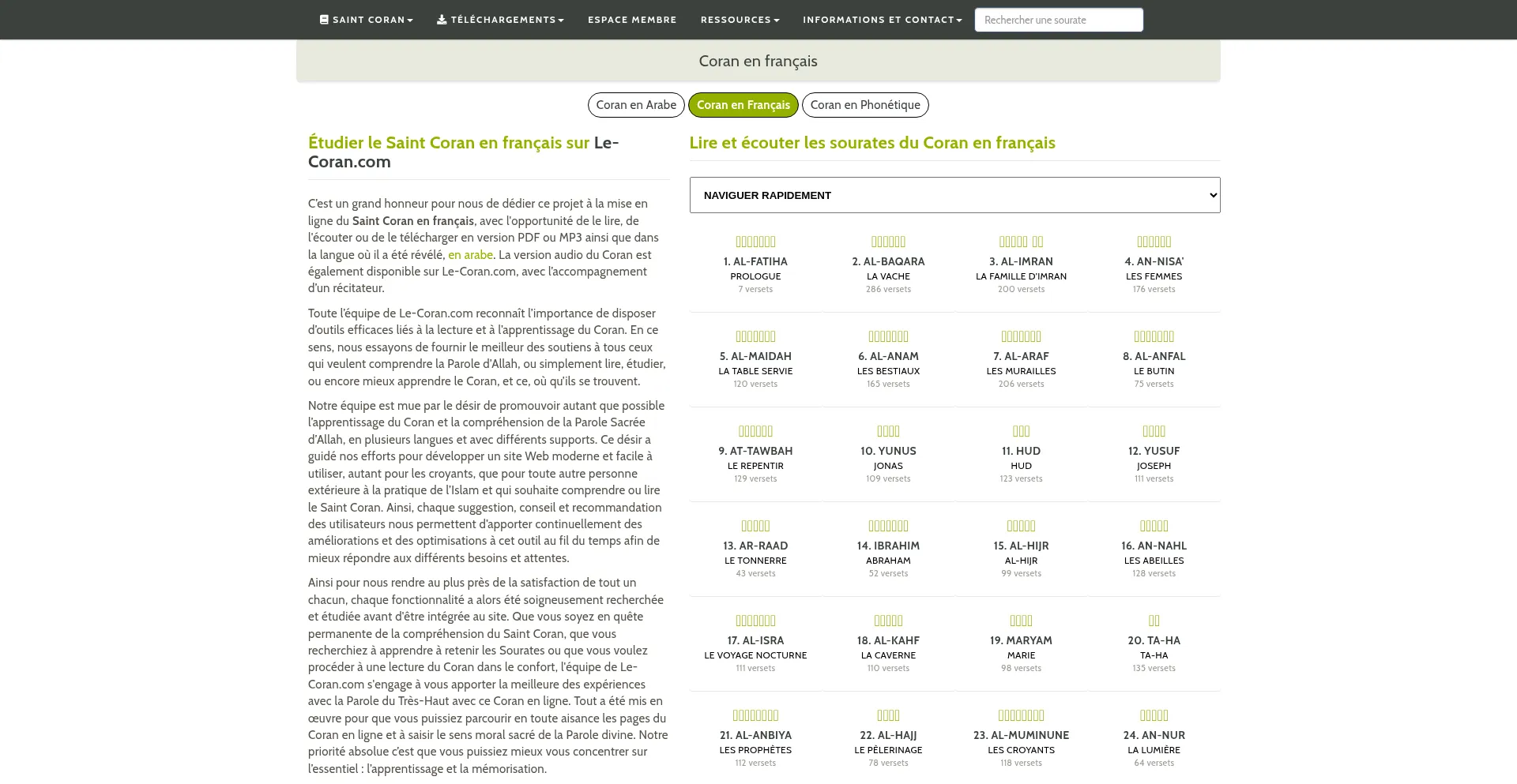 Coran en français - Lire, écouter et télécharger - Arabe et Phonétique