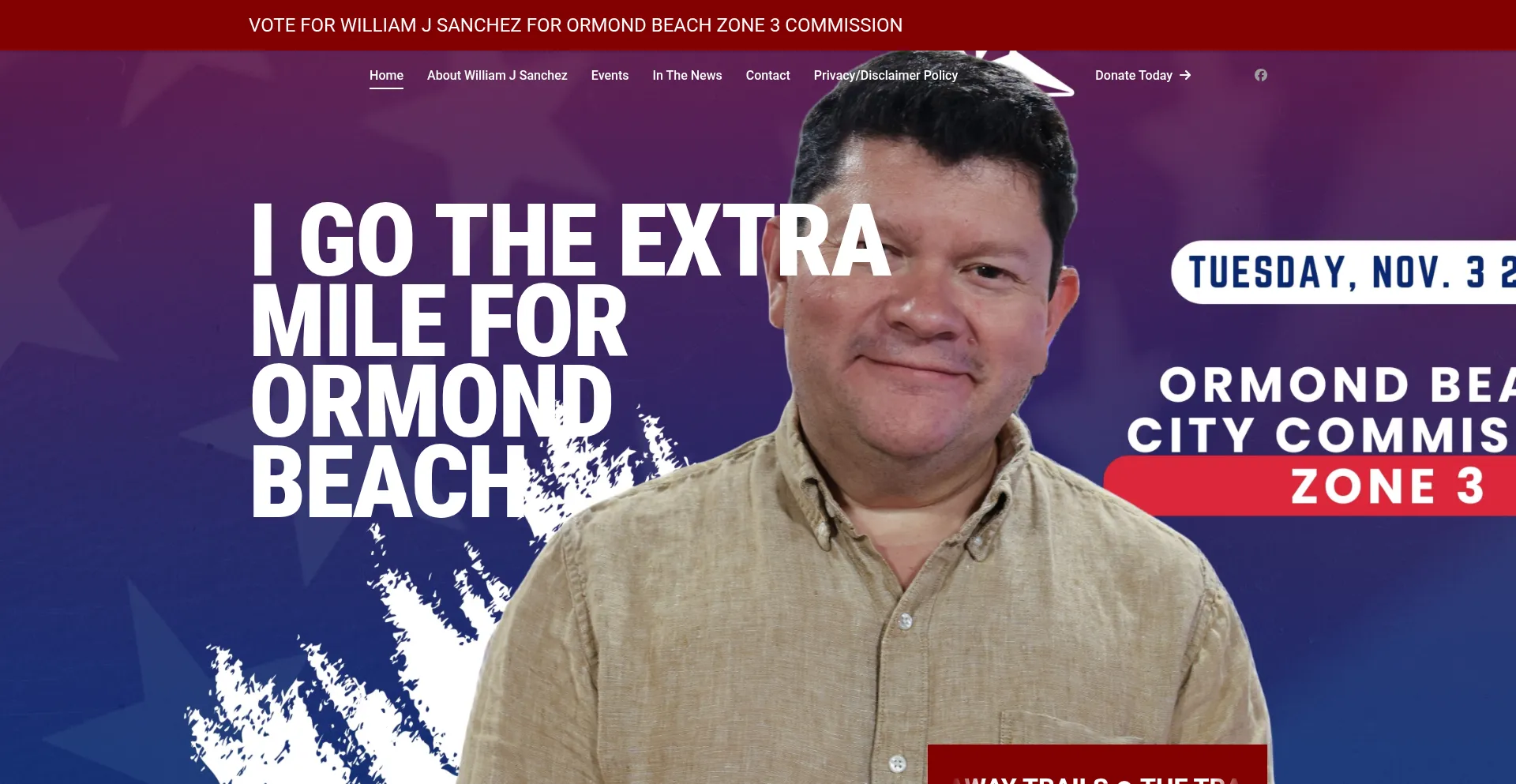 Vote for William J Sanchez, Commissioner Zone 3, Ormond Beach, FL, November 6, 2026. VOTE SANCHEZ