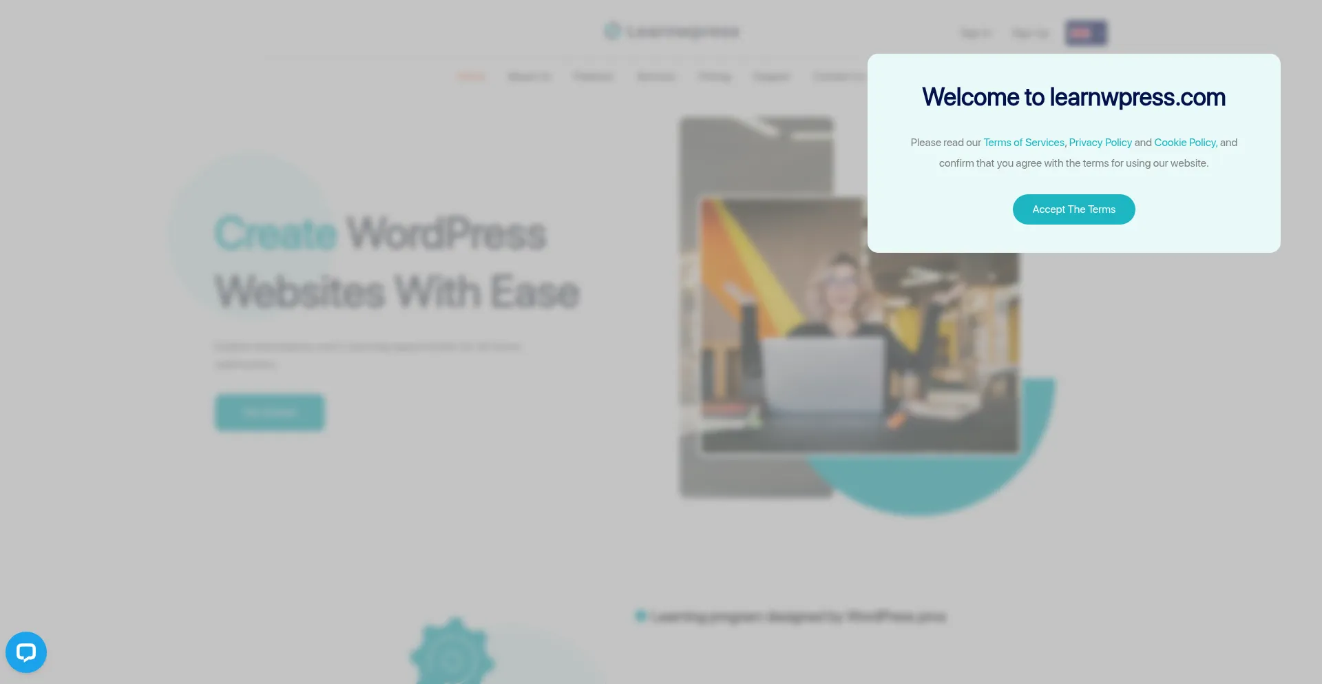该网站实现符合GDPR或CCPA等隐私法规的cookie同意机制。这表明 learnwpress.com 遵守数据保护标准并为用户提供对个人数据收集实践的控制。