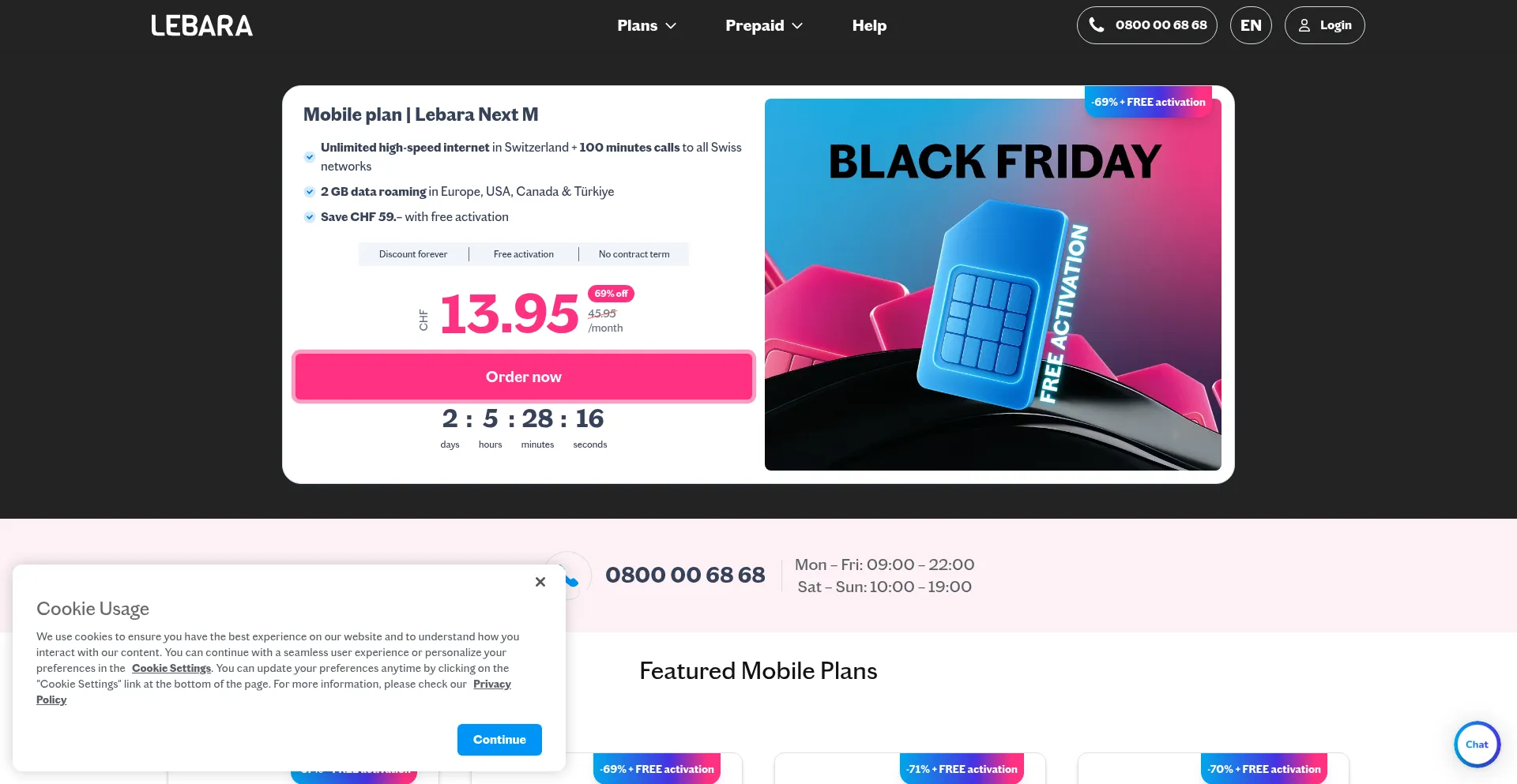 该网站实现符合GDPR或CCPA等隐私法规的cookie同意机制。这表明 lebara.ch 遵守数据保护标准并为用户提供对个人数据收集实践的控制。