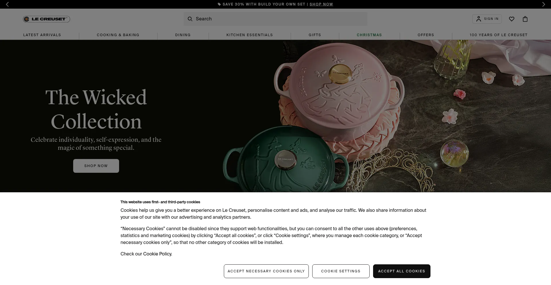 该网站实现符合GDPR或CCPA等隐私法规的cookie同意机制。这表明 lecreuset.co.uk 遵守数据保护标准并为用户提供对个人数据收集实践的控制。