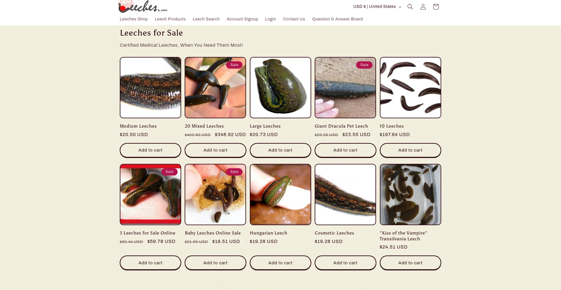 Leeches for Sale. Buy Hirudo Verbana. Online Shop Website. Worldwide Shipping!