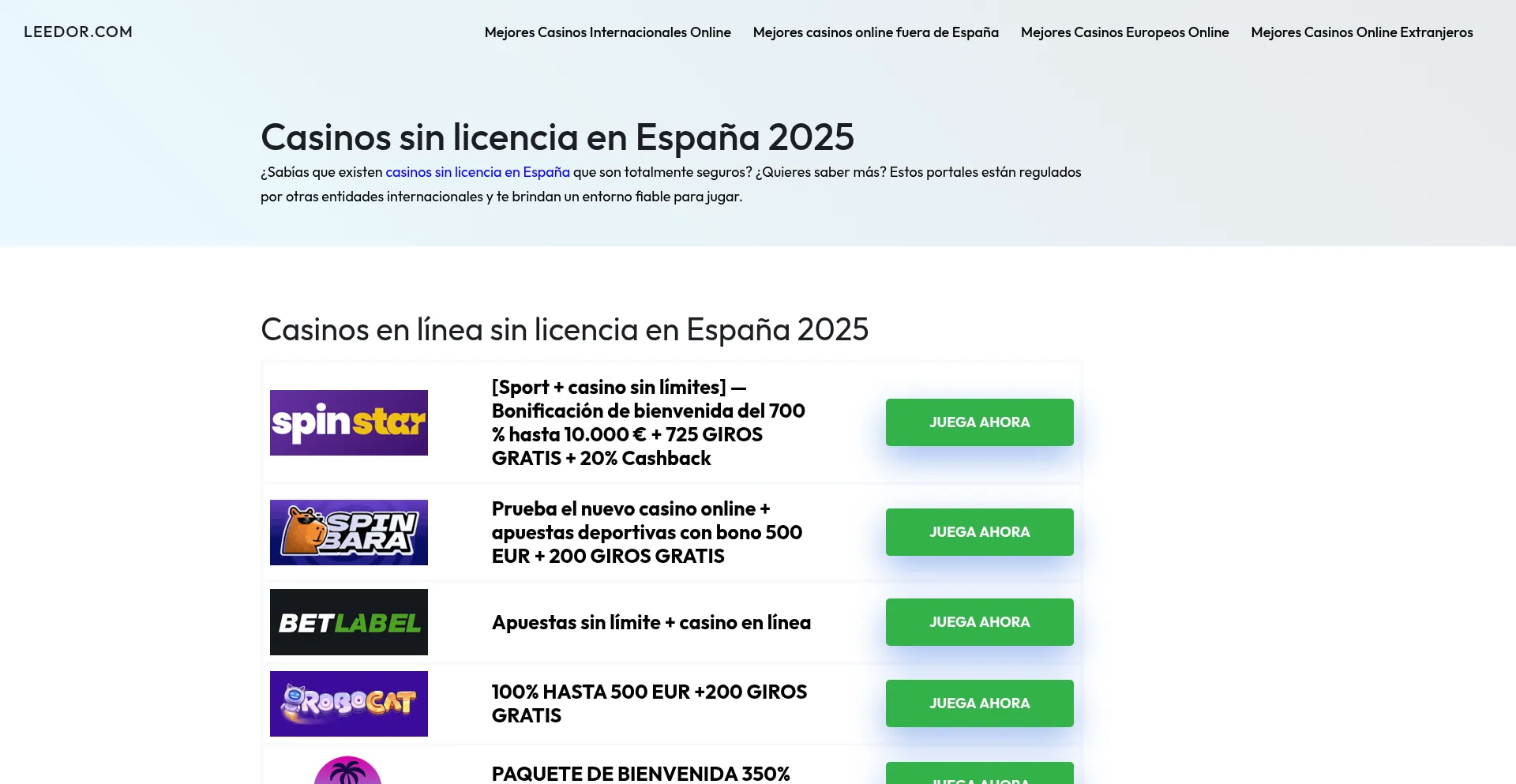 Casinos sin Licencia en España 2025 » Mejor casino online