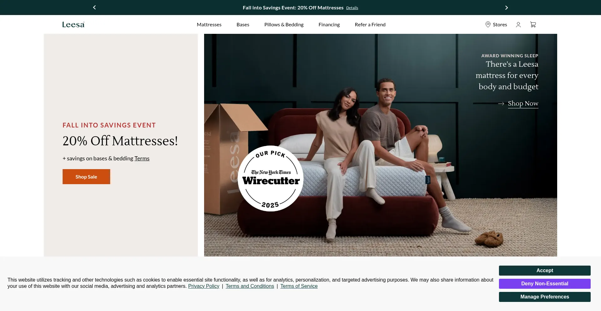 该网站实现符合GDPR或CCPA等隐私法规的cookie同意机制。这表明 leesasleep.com 遵守数据保护标准并为用户提供对个人数据收集实践的控制。