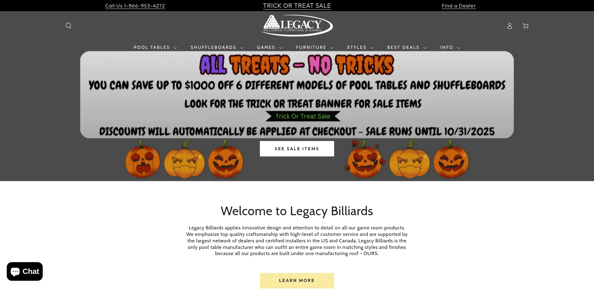 Legacy Billiards is the premier manufacturer of high quality pool tables, shuffleboards, poker tables, and other game room furniture. Sold online or at your local dealer.
