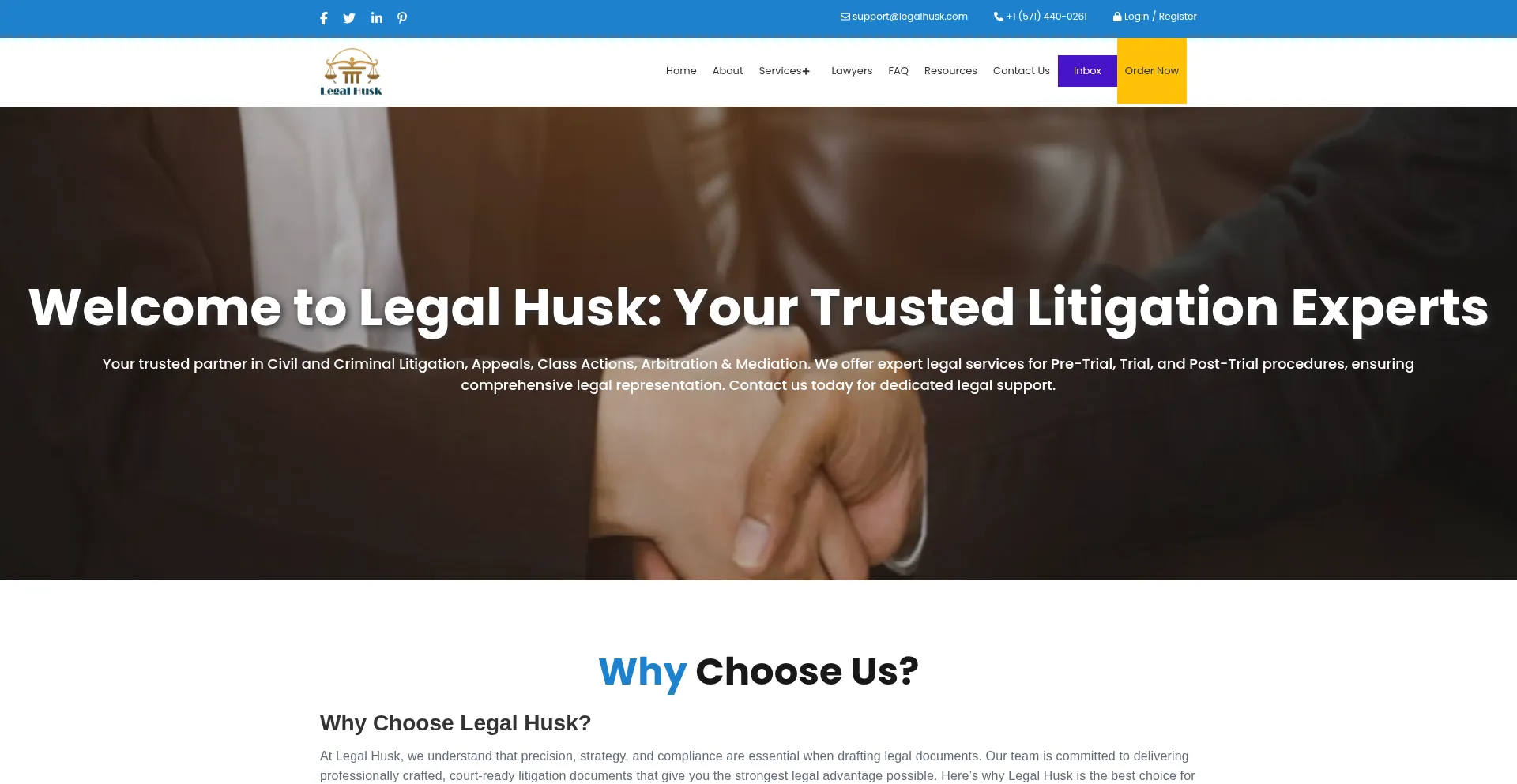 legalhusk.com 使用 Bootstrap,这是一个广泛采用的开源响应式网页开发框架。Bootstrap 通过标准化组件和样式实现移动友好界面的高效创建。