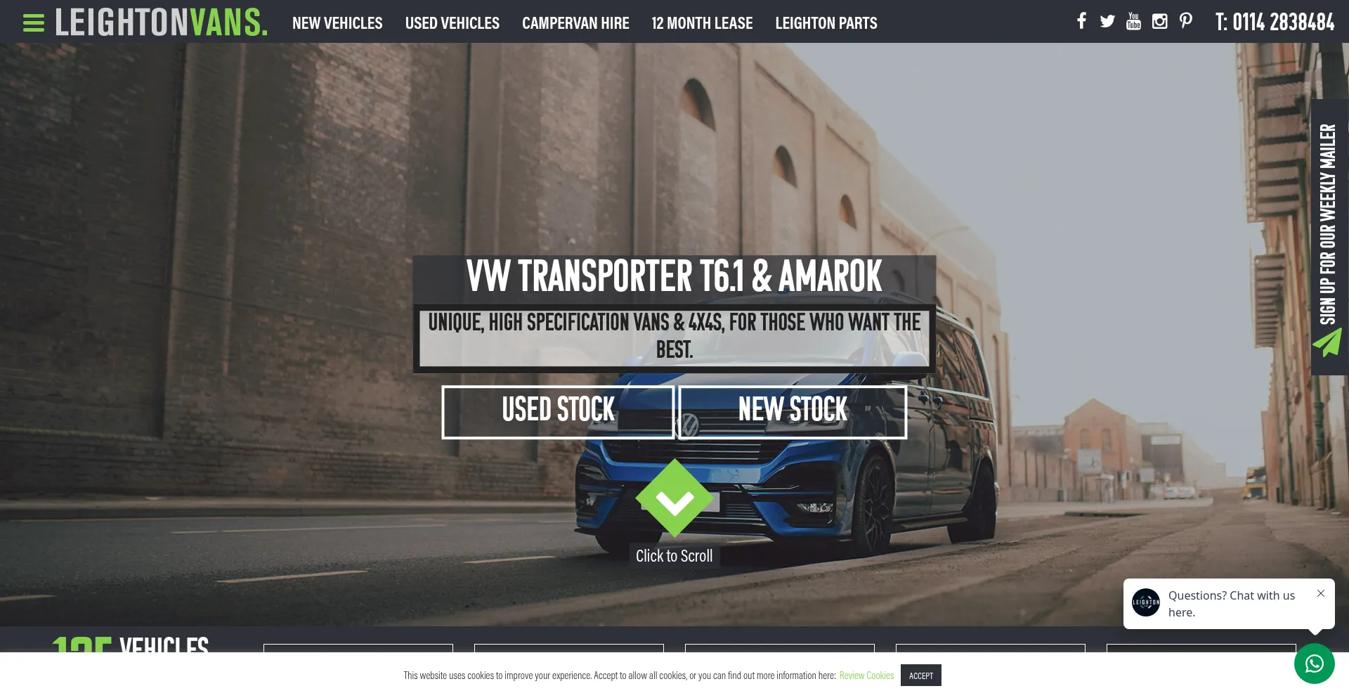 网站上存在社交媒体链接表明 leightonvans.co.uk 在社交媒体上维护官方账户,这是可信度和参与度的积极信号。