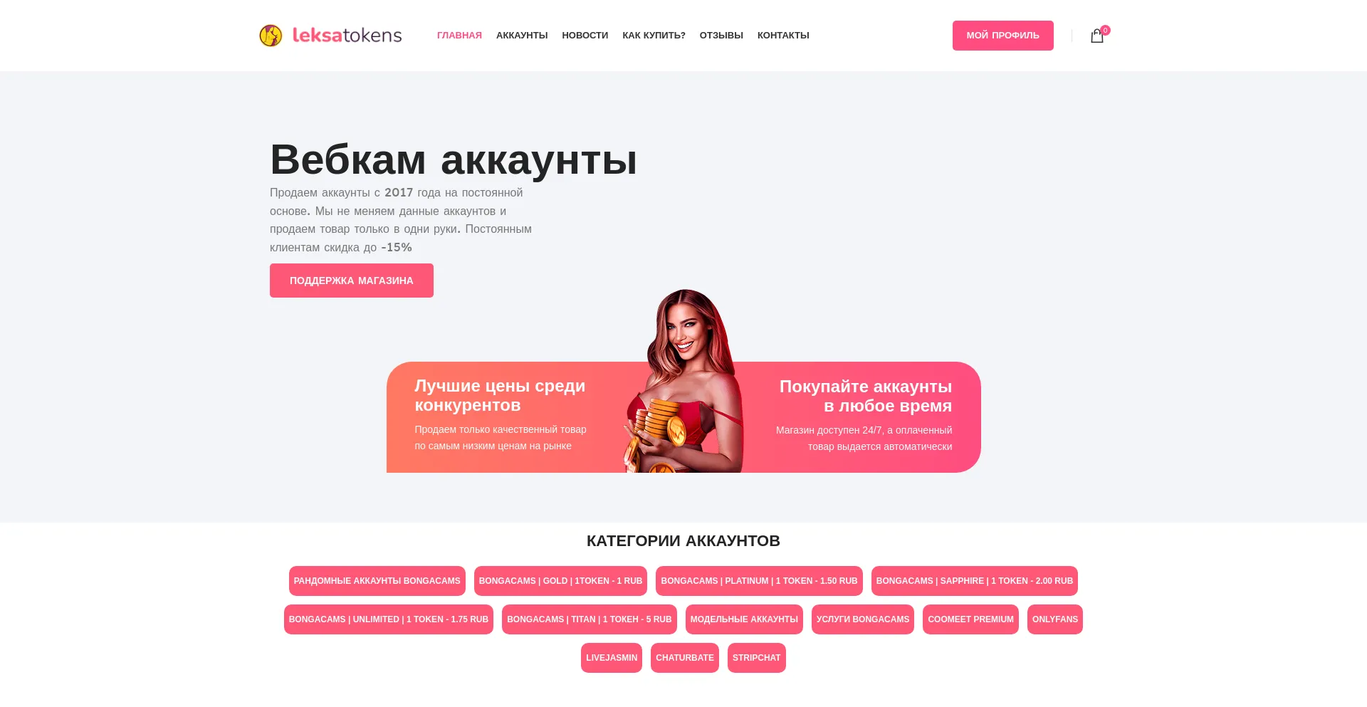 Купить аккаунты с токенами для BongaCams и минуты CooMeet Premium - LEKSA-TOKENS