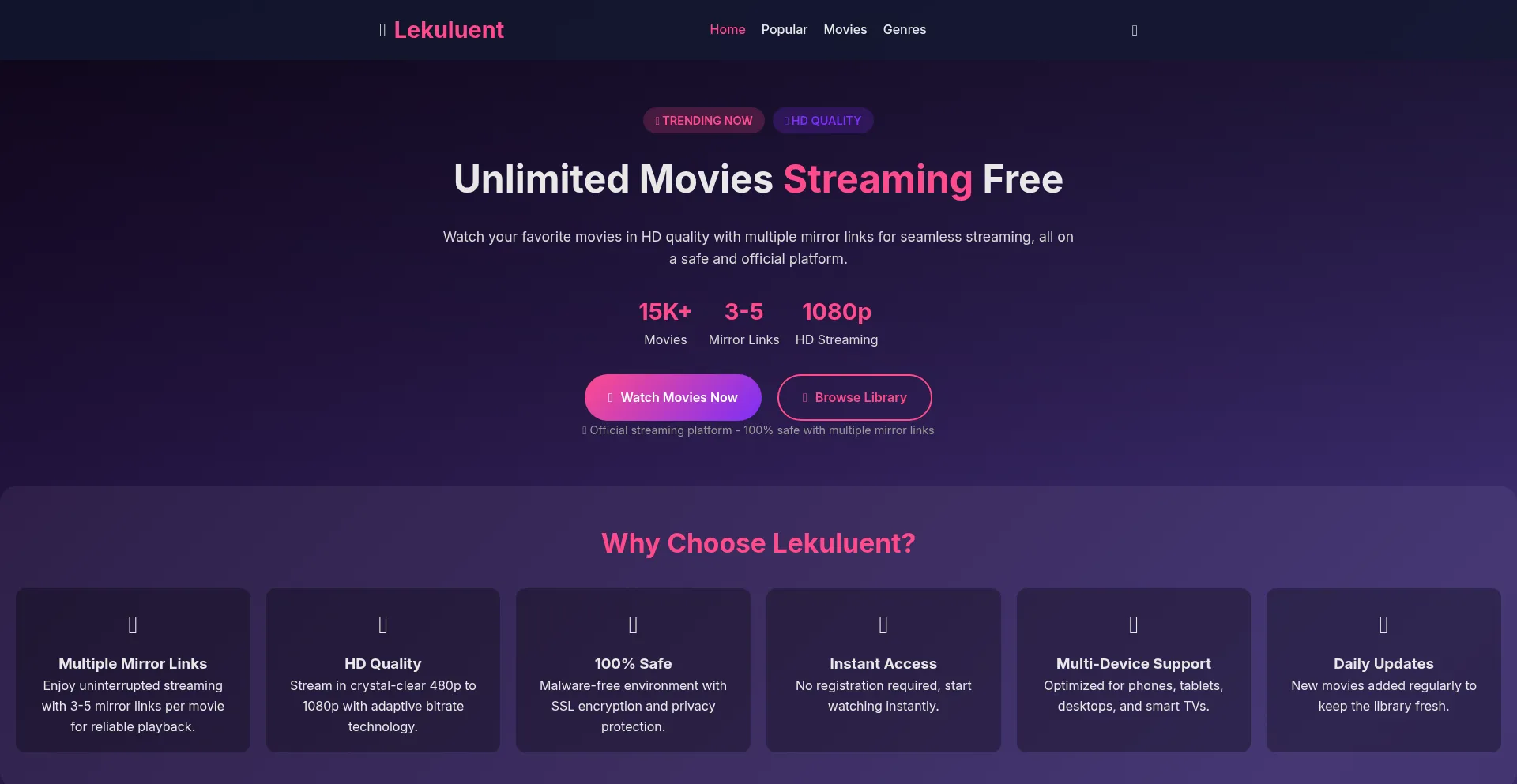 Lekuluent: Stream movies free in HD with multiple mirror links. Enjoy a safe, high-quality viewing experience with no registration required.