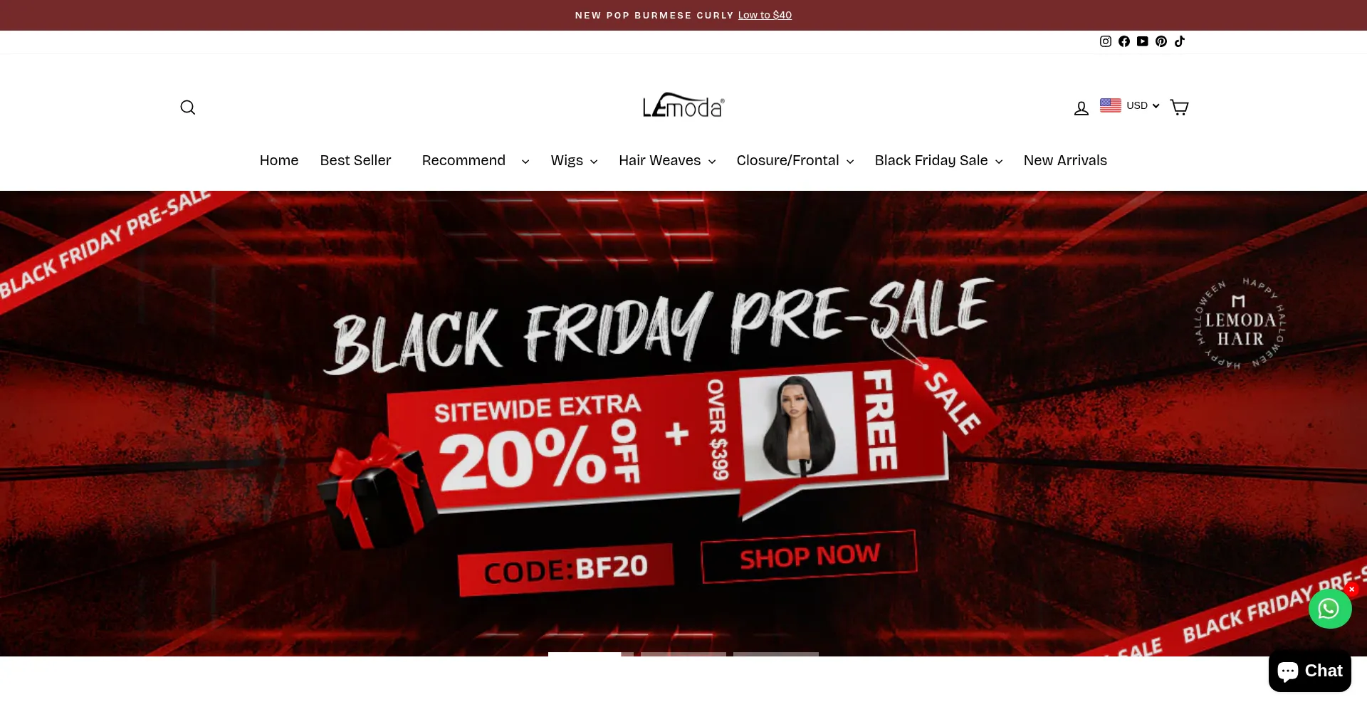 网站上存在社交媒体链接表明 lemodahair.com 在社交媒体上维护官方账户,这是可信度和参与度的积极信号。