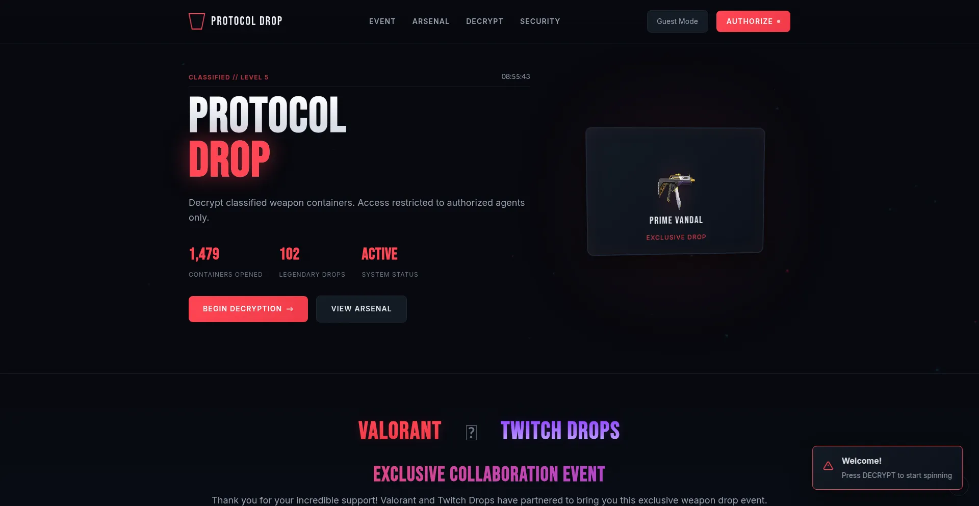 VALORANT Protocol Drop - Exclusive Skin Roulette