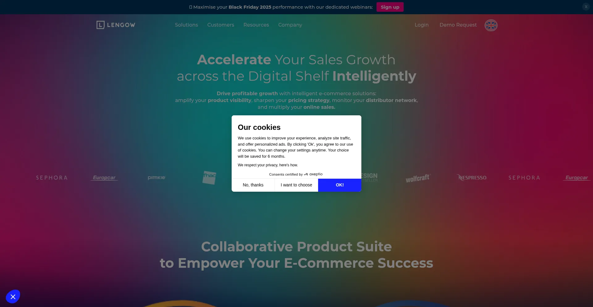 该网站实现符合GDPR或CCPA等隐私法规的cookie同意机制。这表明 lengow.com 遵守数据保护标准并为用户提供对个人数据收集实践的控制。