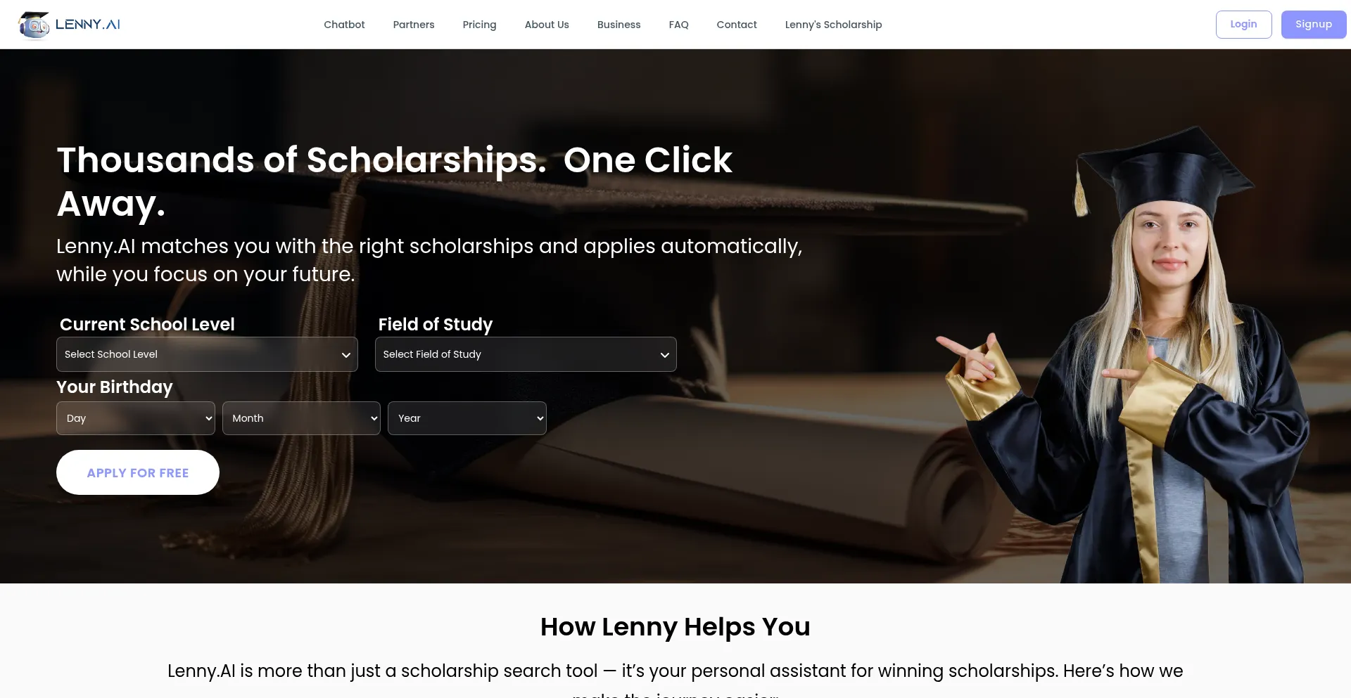 Lenny is the leading scholarship platform for international students. Over 1000 scholarships - Find Scholarships, Financial Aid & Study loan all in one place.