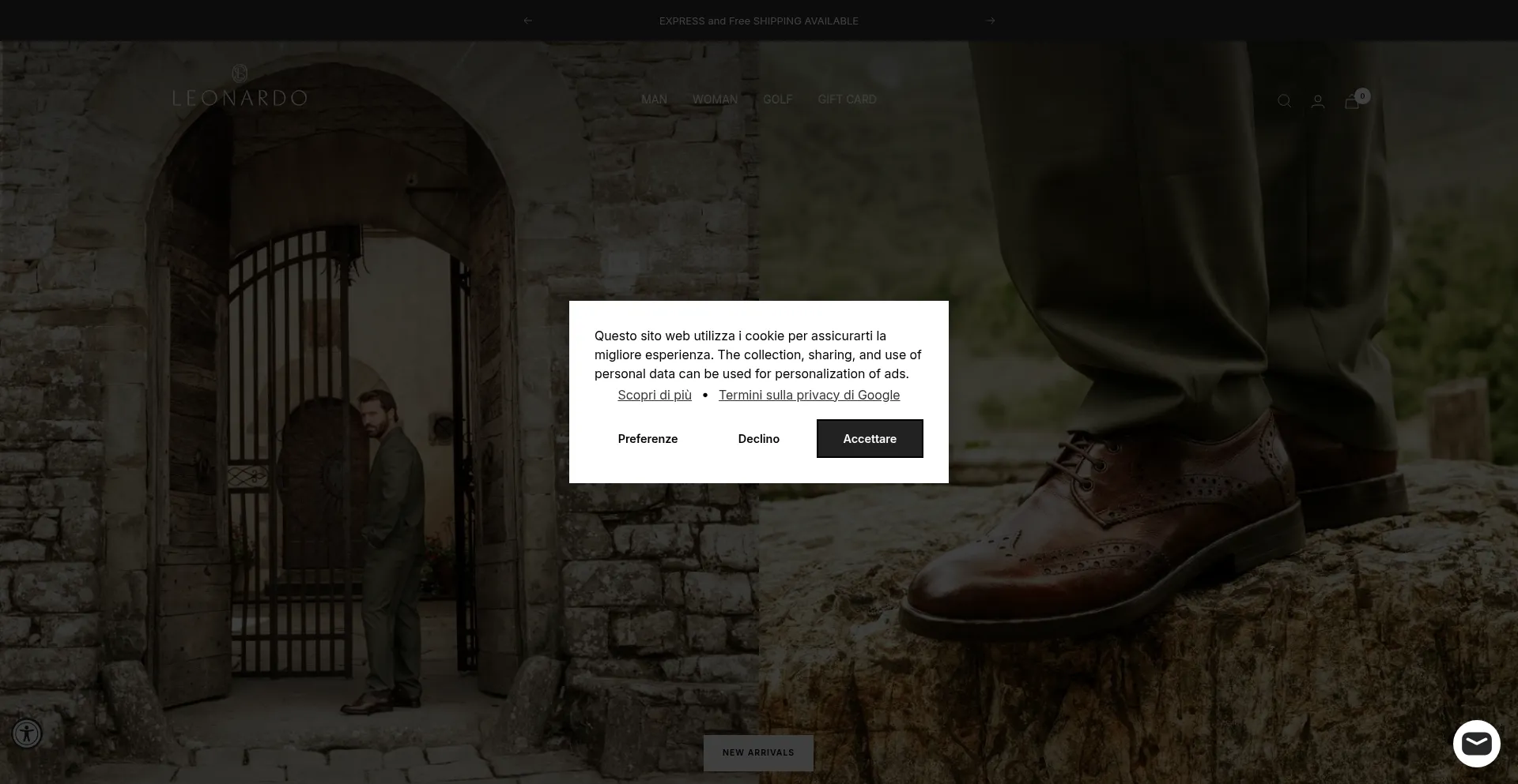 该网站实现符合GDPR或CCPA等隐私法规的cookie同意机制。这表明 leonardoshoes.com 遵守数据保护标准并为用户提供对个人数据收集实践的控制。