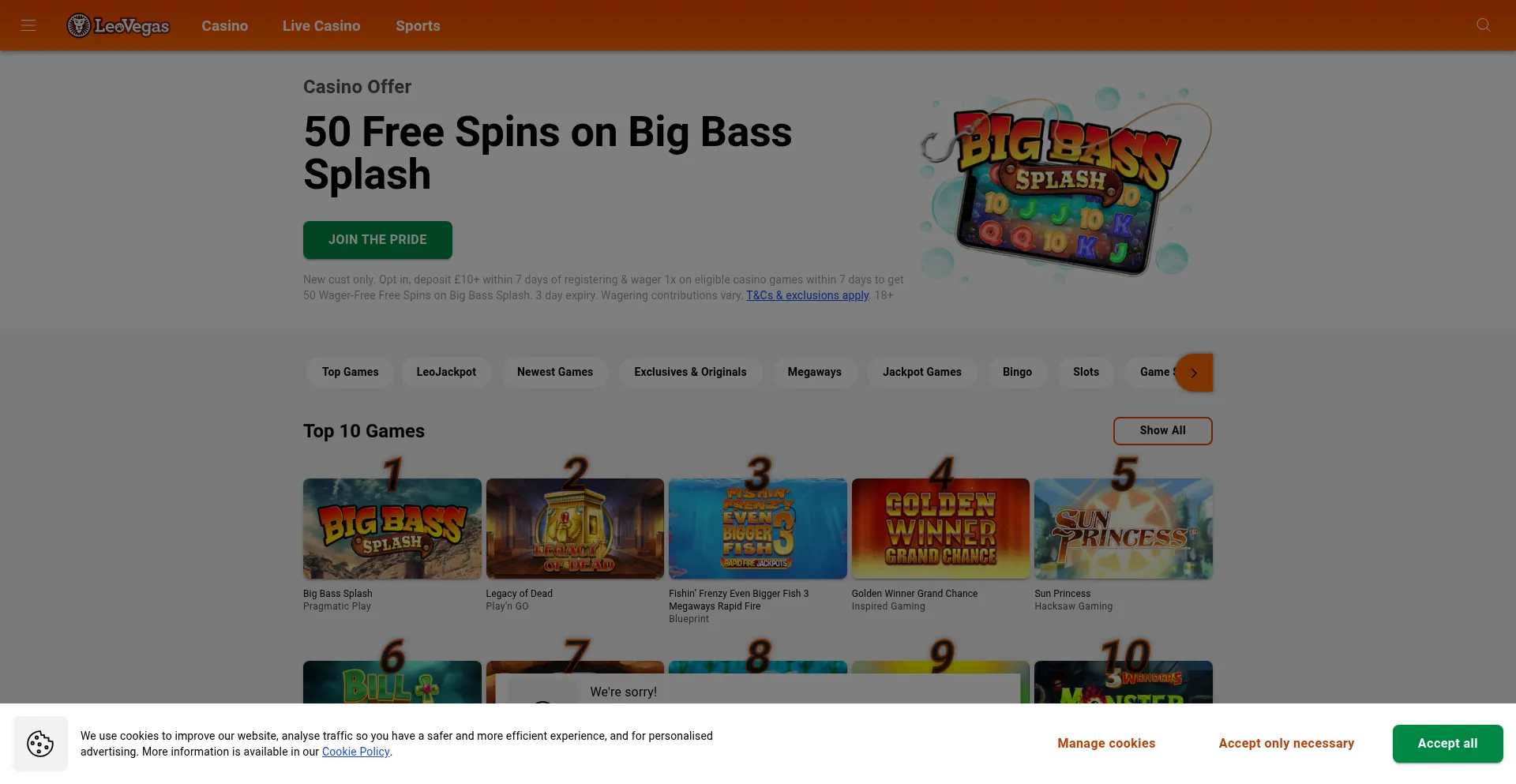 该网站实现符合GDPR或CCPA等隐私法规的cookie同意机制。这表明 leovegas.co.uk 遵守数据保护标准并为用户提供对个人数据收集实践的控制。