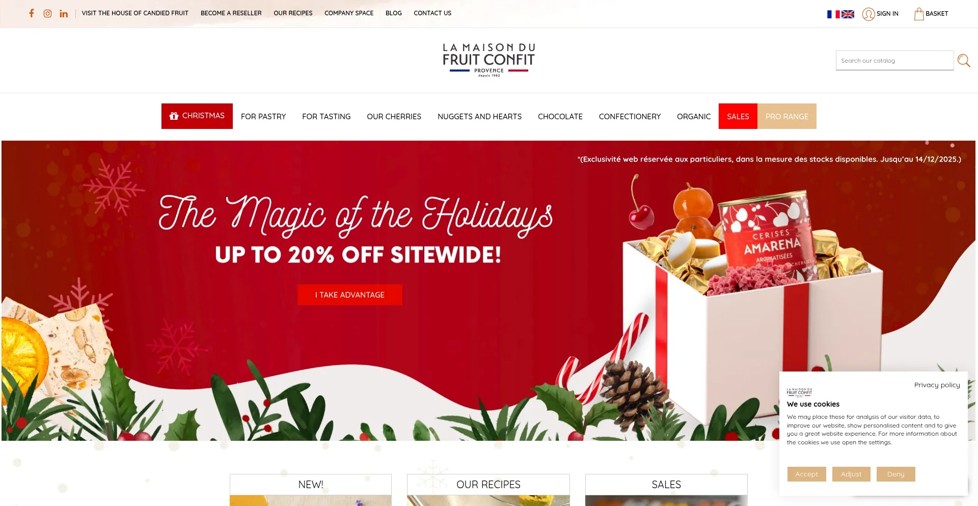 Discover our online shop of gourmandises of Provence: candied fruits, calissons, confit oranges, candied cherries, candied clementines, chestnuts, fruit coulis, gift boxes.