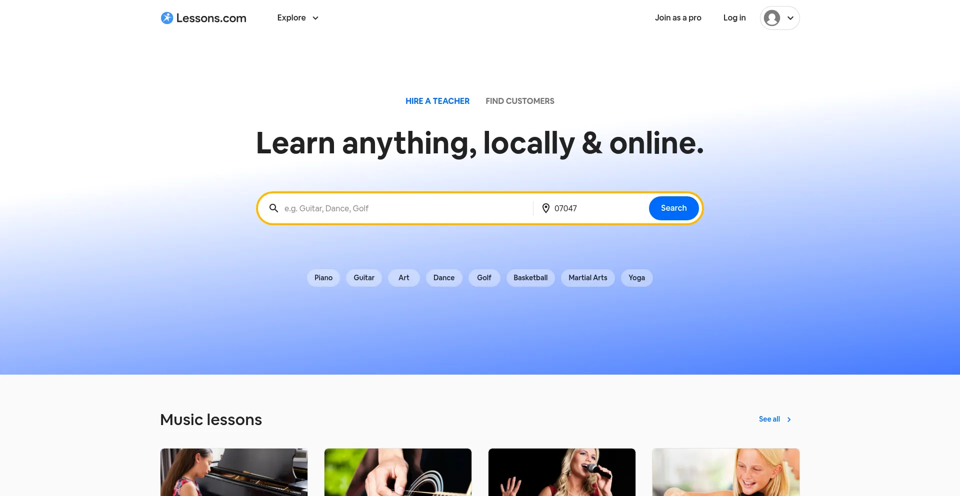 Take private music lessons, guitar lessons, dance classes, piano lessons, swimming lessons, yoga classes, basketball training, and more!