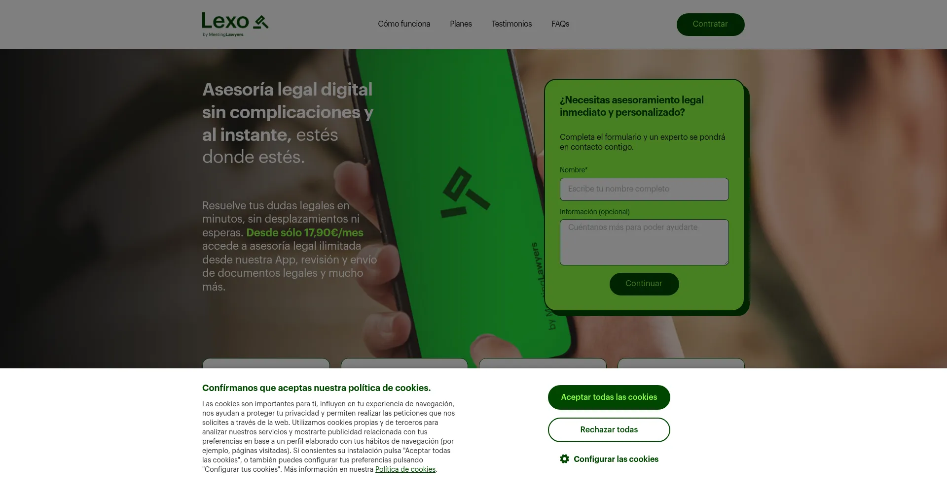 该网站实现符合GDPR或CCPA等隐私法规的cookie同意机制。这表明 lexo.meetinglawyers.com 遵守数据保护标准并为用户提供对个人数据收集实践的控制。