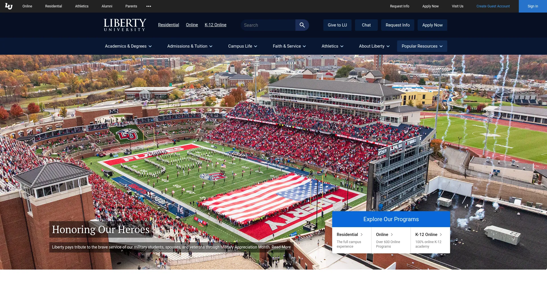 Liberty University has over 700 degrees at the bachelor's, master's, or doctoral level. Study at our beautiful campus in central Virginia or online from anywhere in the world!