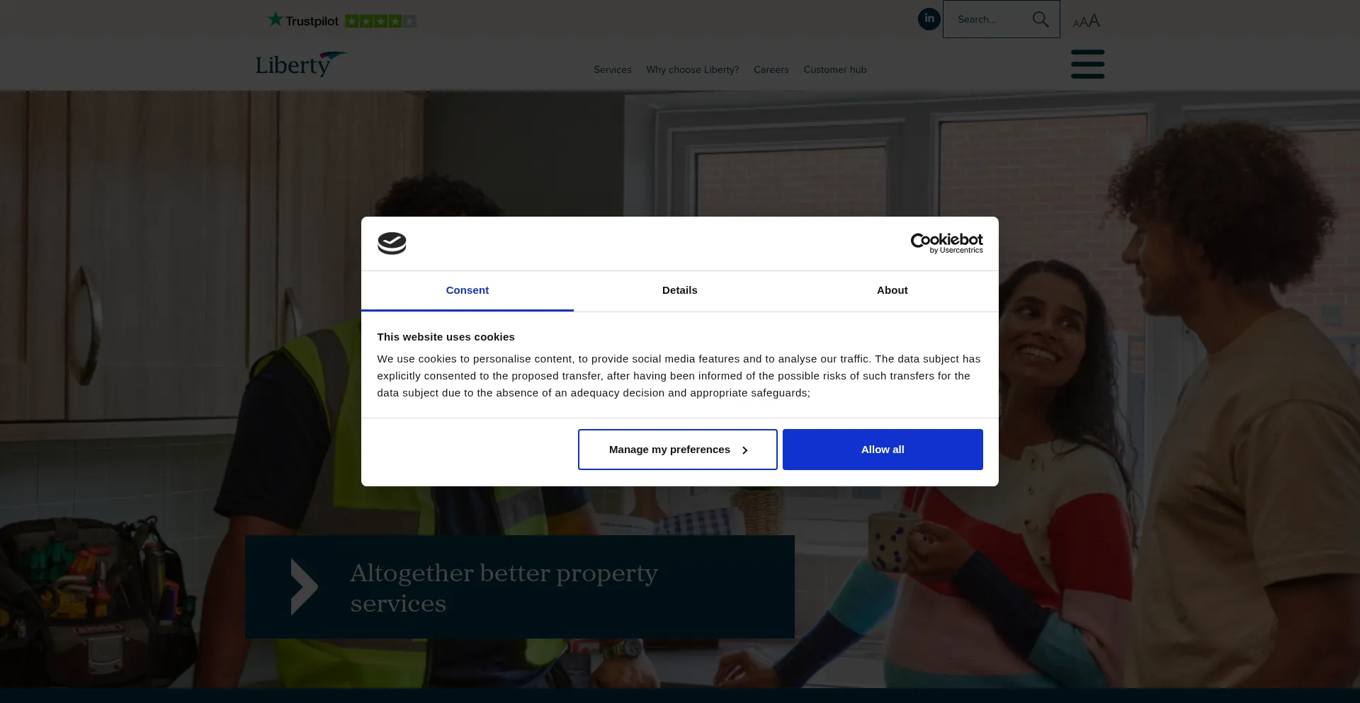 该网站实现符合GDPR或CCPA等隐私法规的cookie同意机制。这表明 liberty-group.co.uk 遵守数据保护标准并为用户提供对个人数据收集实践的控制。