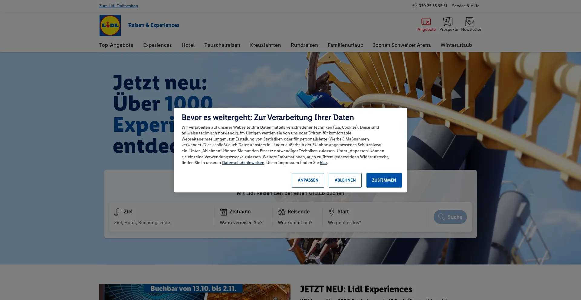 该网站实现符合GDPR或CCPA等隐私法规的cookie同意机制。这表明 lidl-reisen.de 遵守数据保护标准并为用户提供对个人数据收集实践的控制。