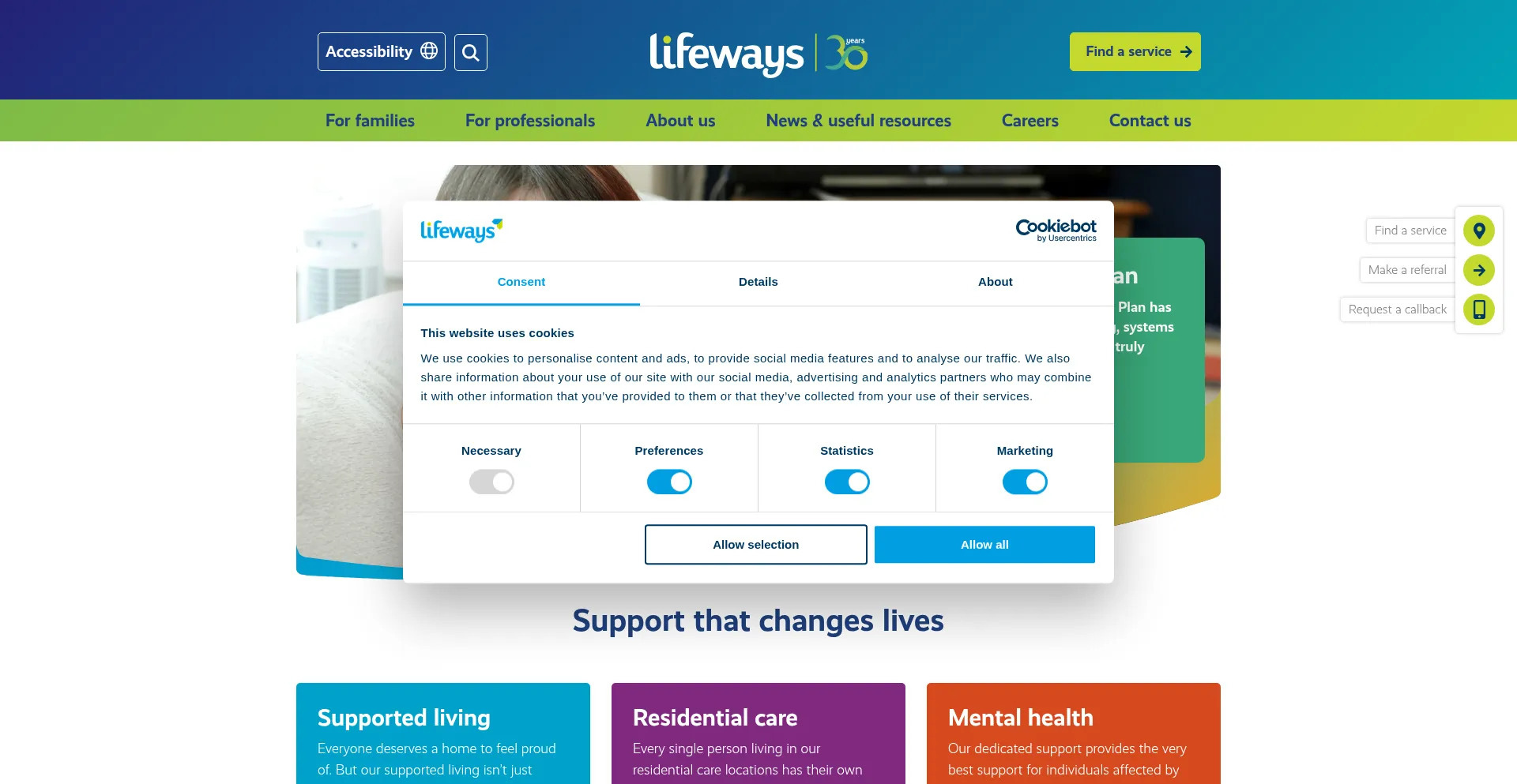 该网站实现符合GDPR或CCPA等隐私法规的cookie同意机制。这表明 lifeways.co.uk 遵守数据保护标准并为用户提供对个人数据收集实践的控制。