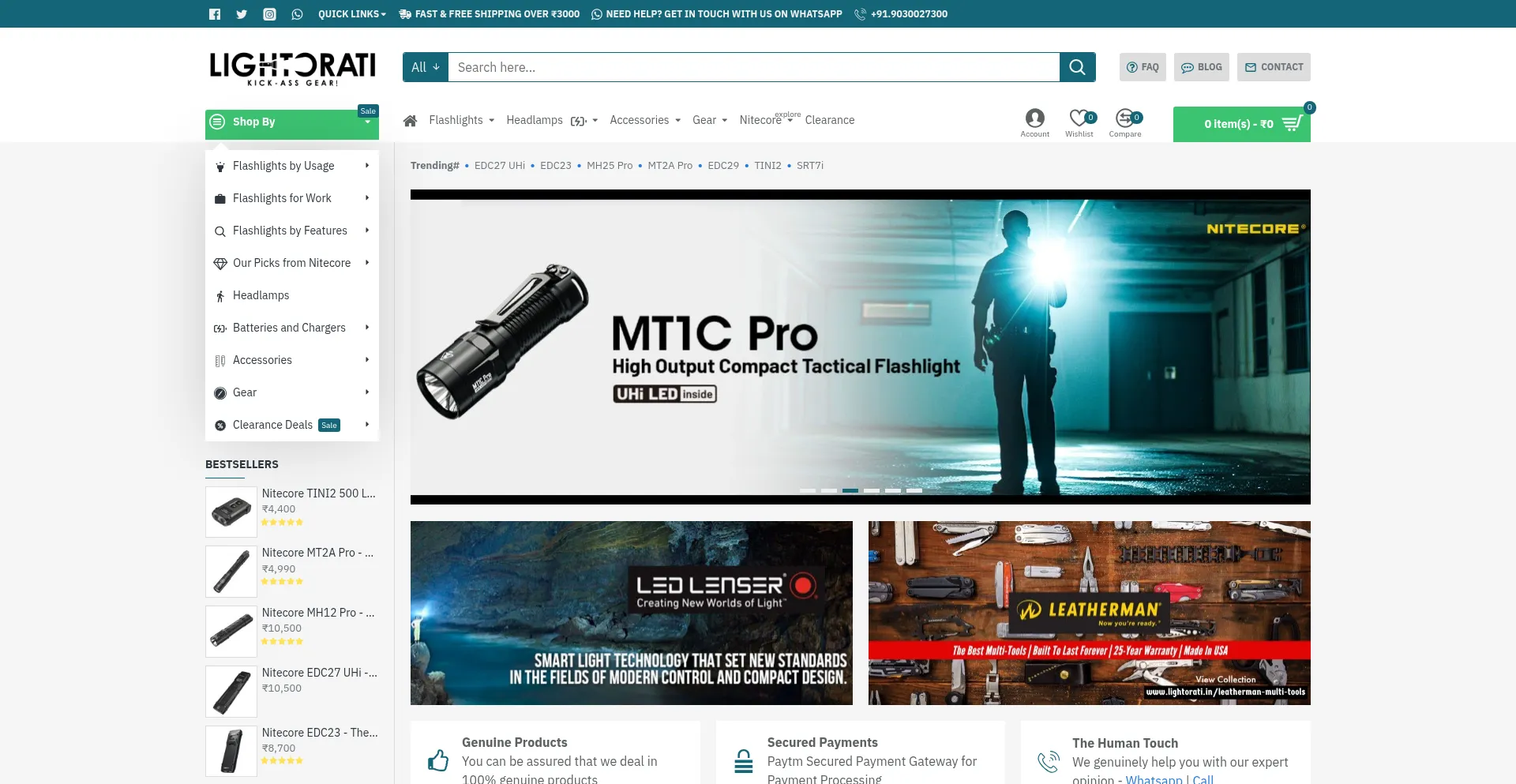 Lightorati LED Flashlights India - High Power Torch Lights, Searchlights and Adventure Gear in India