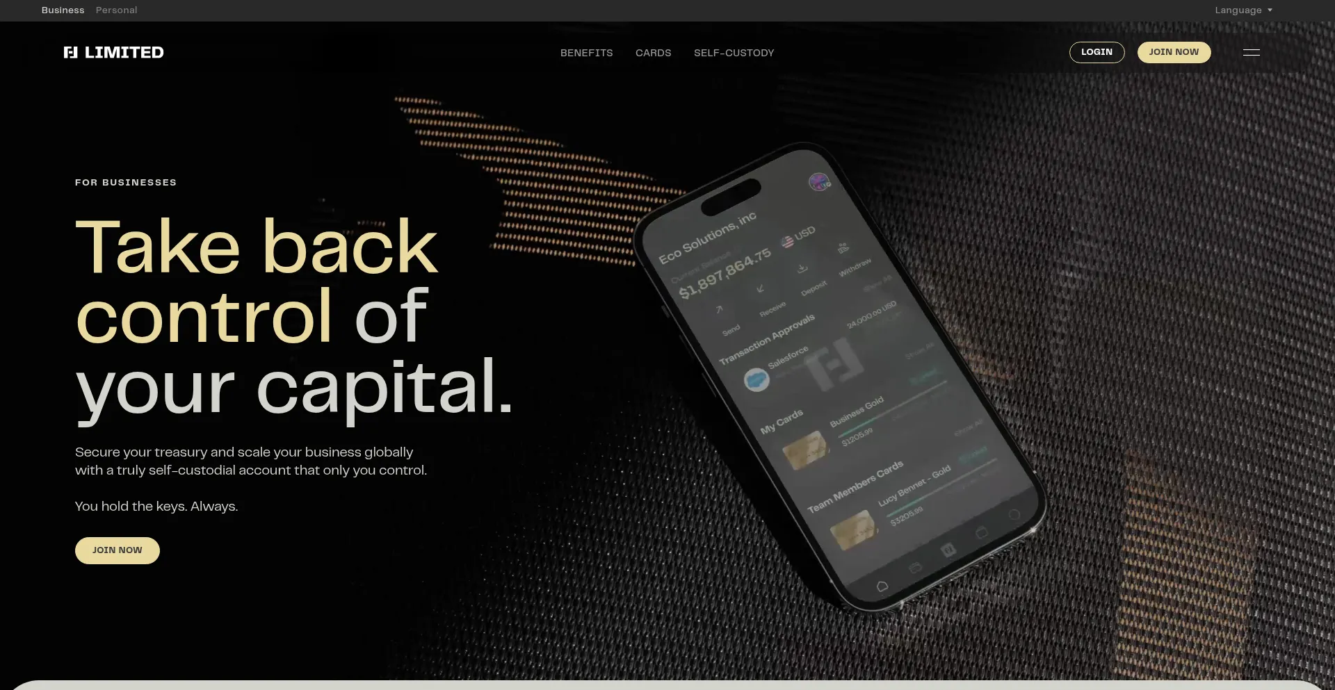 Secure your treasury and scale your business globally with a truly self-custodial account that only you control. No banks. No middlemen.