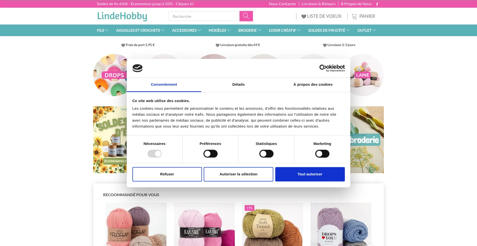 该网站实现符合GDPR或CCPA等隐私法规的cookie同意机制。这表明 lindehobby.fr 遵守数据保护标准并为用户提供对个人数据收集实践的控制。