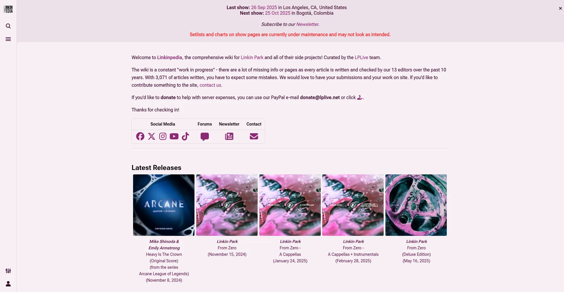 网站上存在社交媒体链接表明 linkinpedia.com 在社交媒体上维护官方账户,这是可信度和参与度的积极信号。