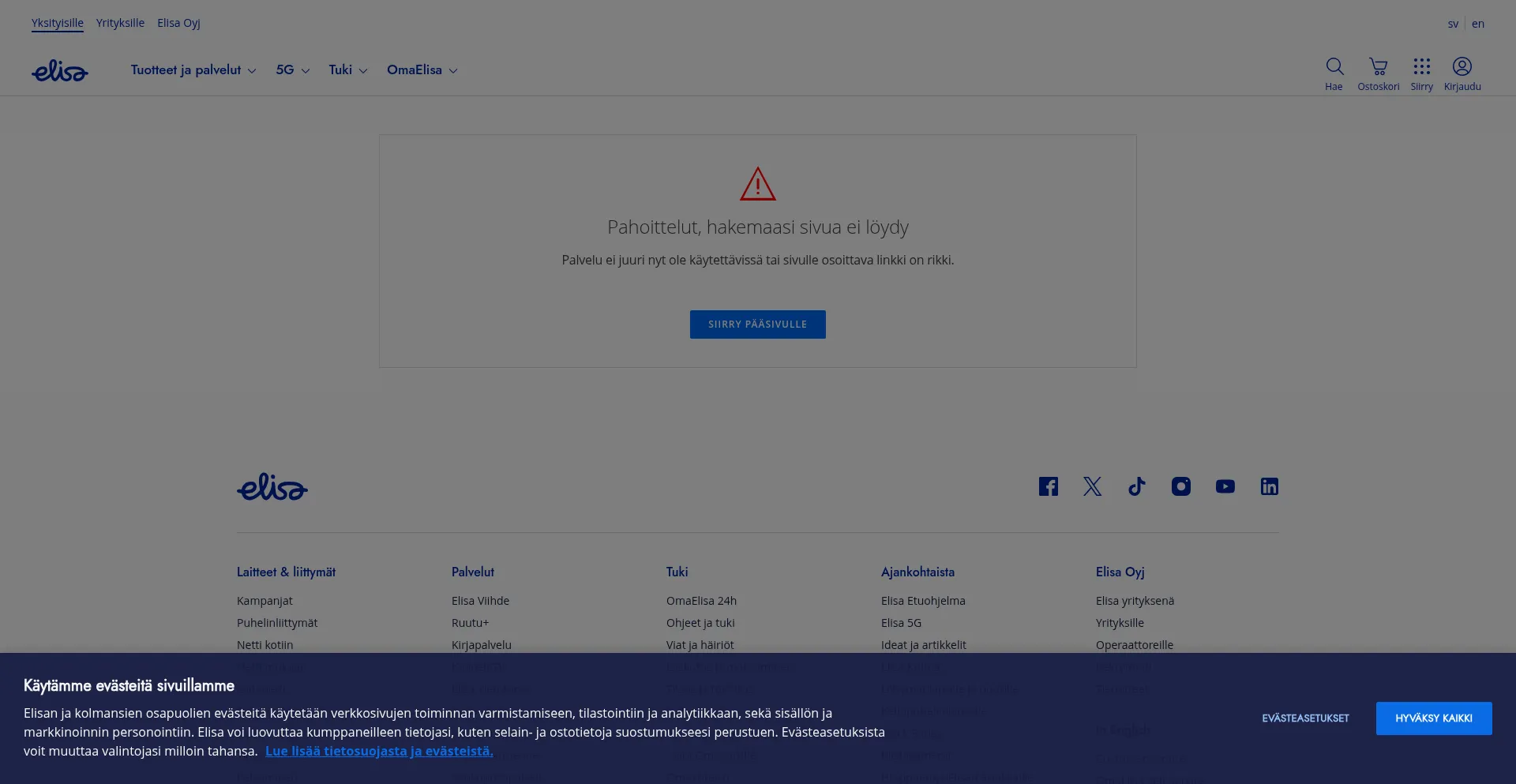 Pahoittelut, hakemaasi sivua ei löydy - Elisa