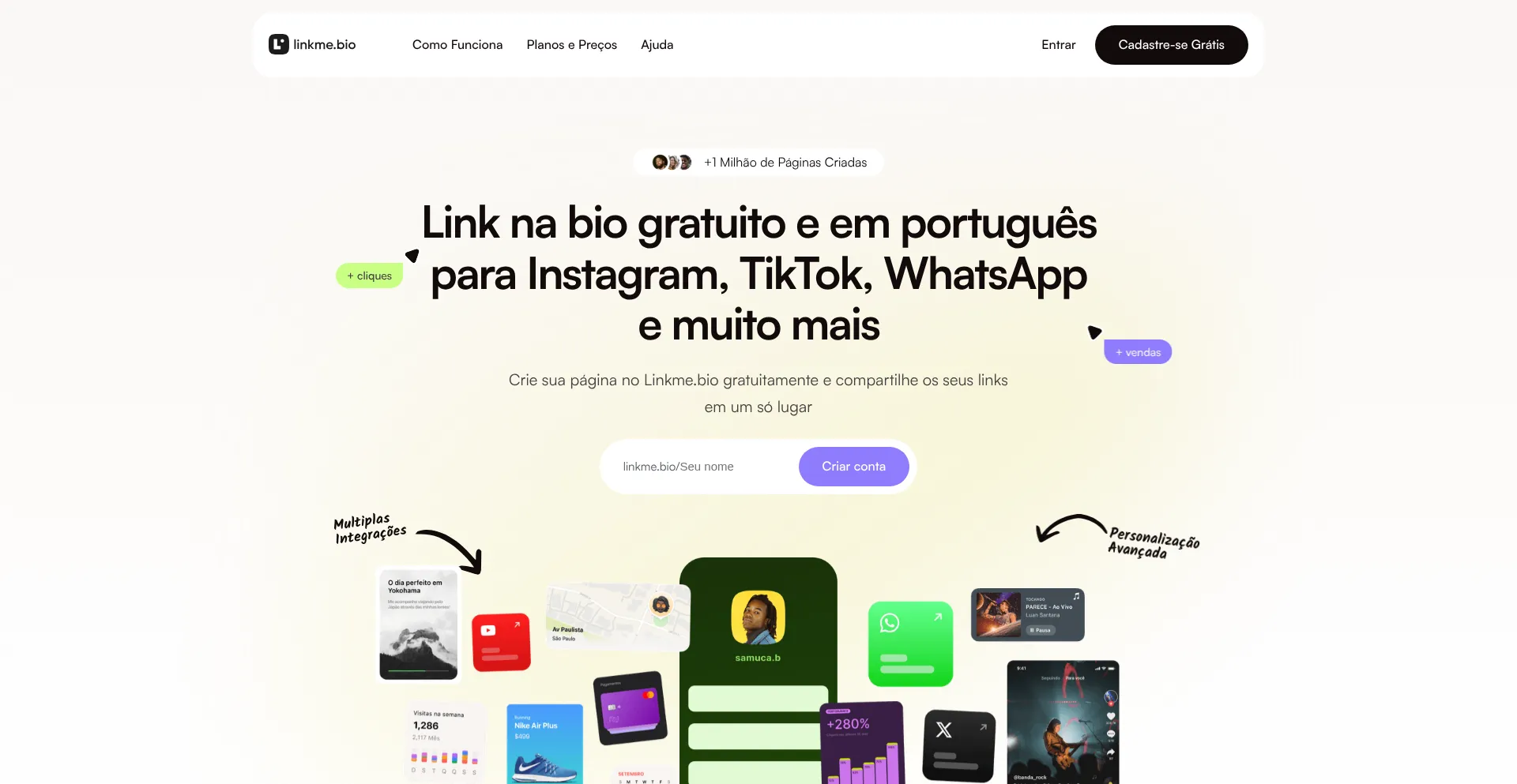 Link da bio para o Instagram, WhatsApp, TikTok e outras Redes Sociais, crie grátis