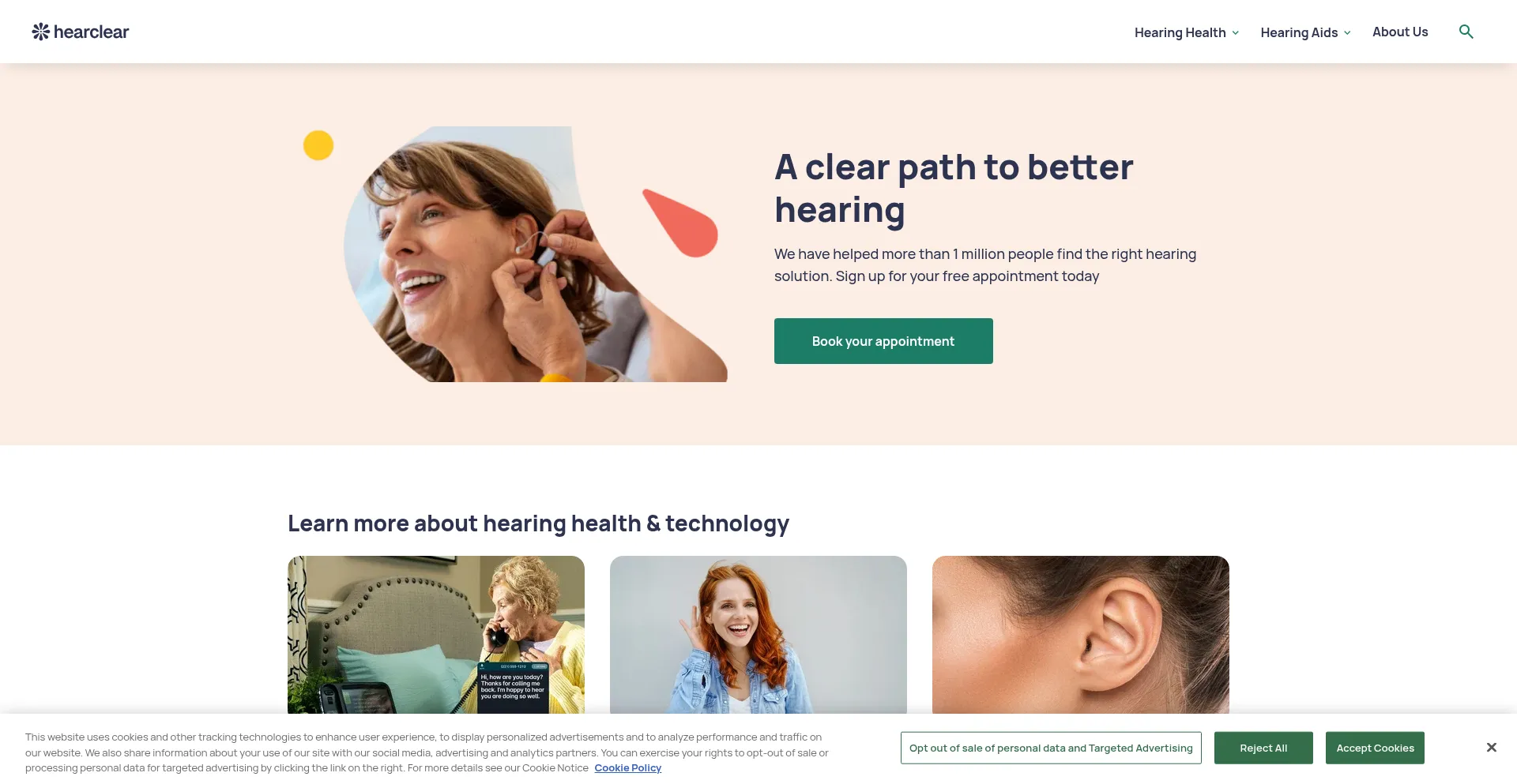 该网站实现符合GDPR或CCPA等隐私法规的cookie同意机制。这表明 links.hearclear.com 遵守数据保护标准并为用户提供对个人数据收集实践的控制。