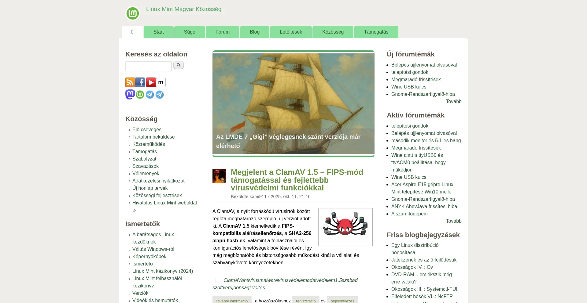 网站上存在社交媒体链接表明 linuxmint.hu 在社交媒体上维护官方账户,这是可信度和参与度的积极信号。