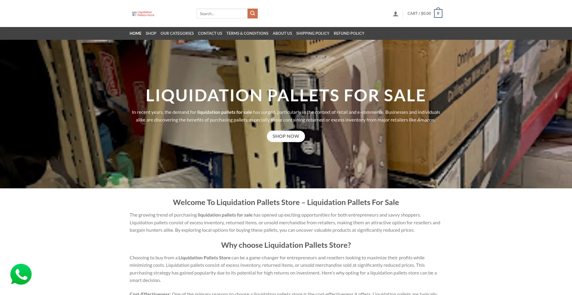 分析表明 liquidationpalletsstore.com 作为电子商务平台运营,促进商品或服务的在线交易。该网站实现了购物车功能、支付处理系统和产品目录功能,这些是商业零售运营的典型特征。