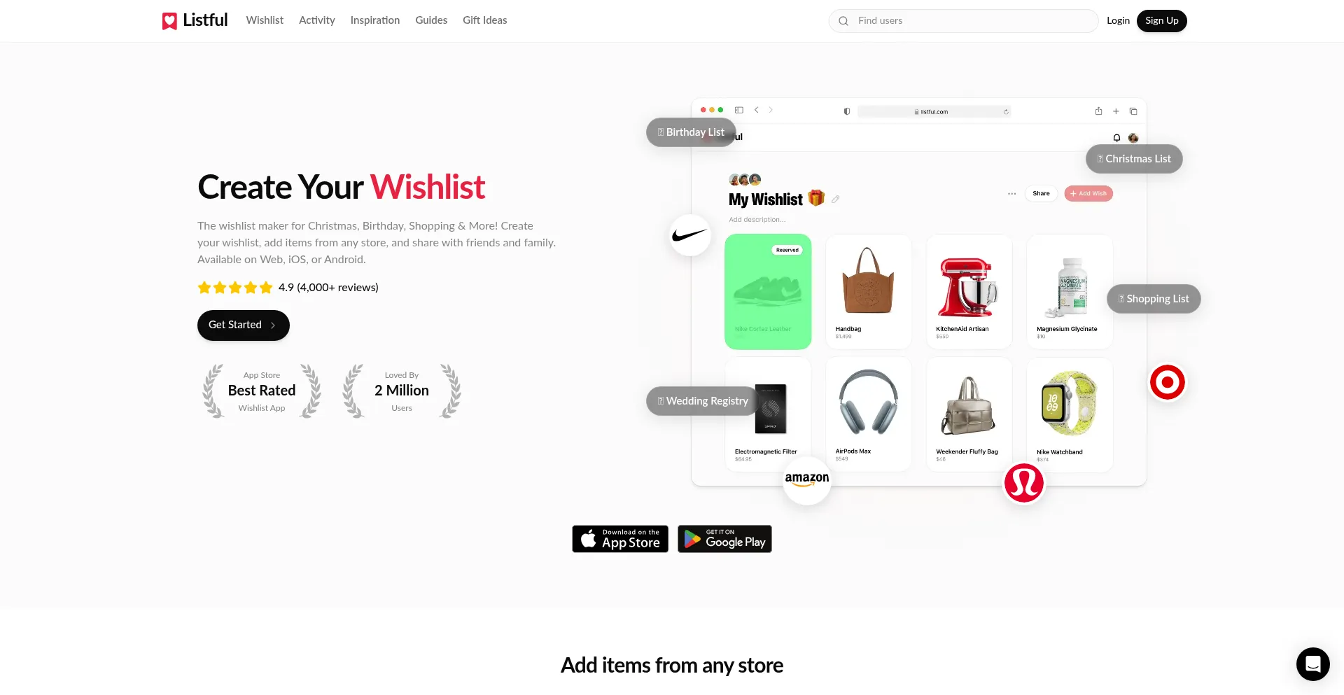 Listful: Wishlist for Christmas, Birthday, Shopping & More