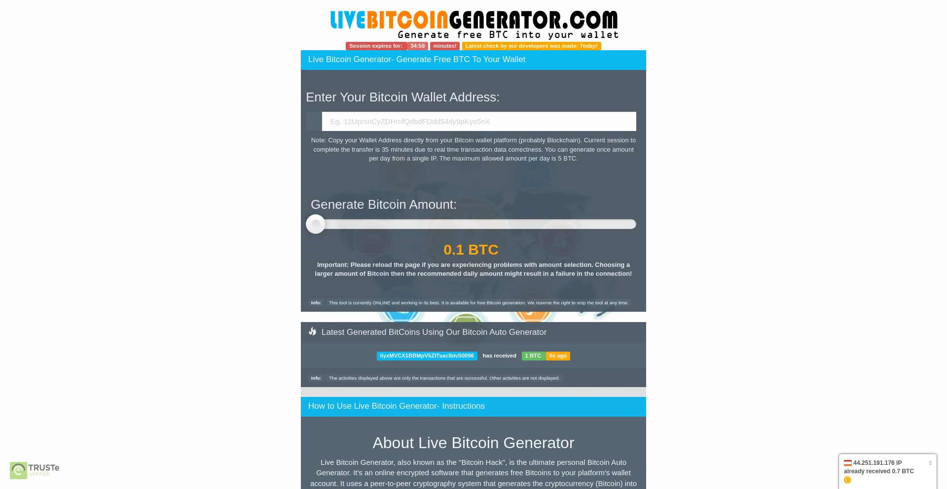 The Live Bitcoin Generator- Generate Free BTC to Your Wallet Account