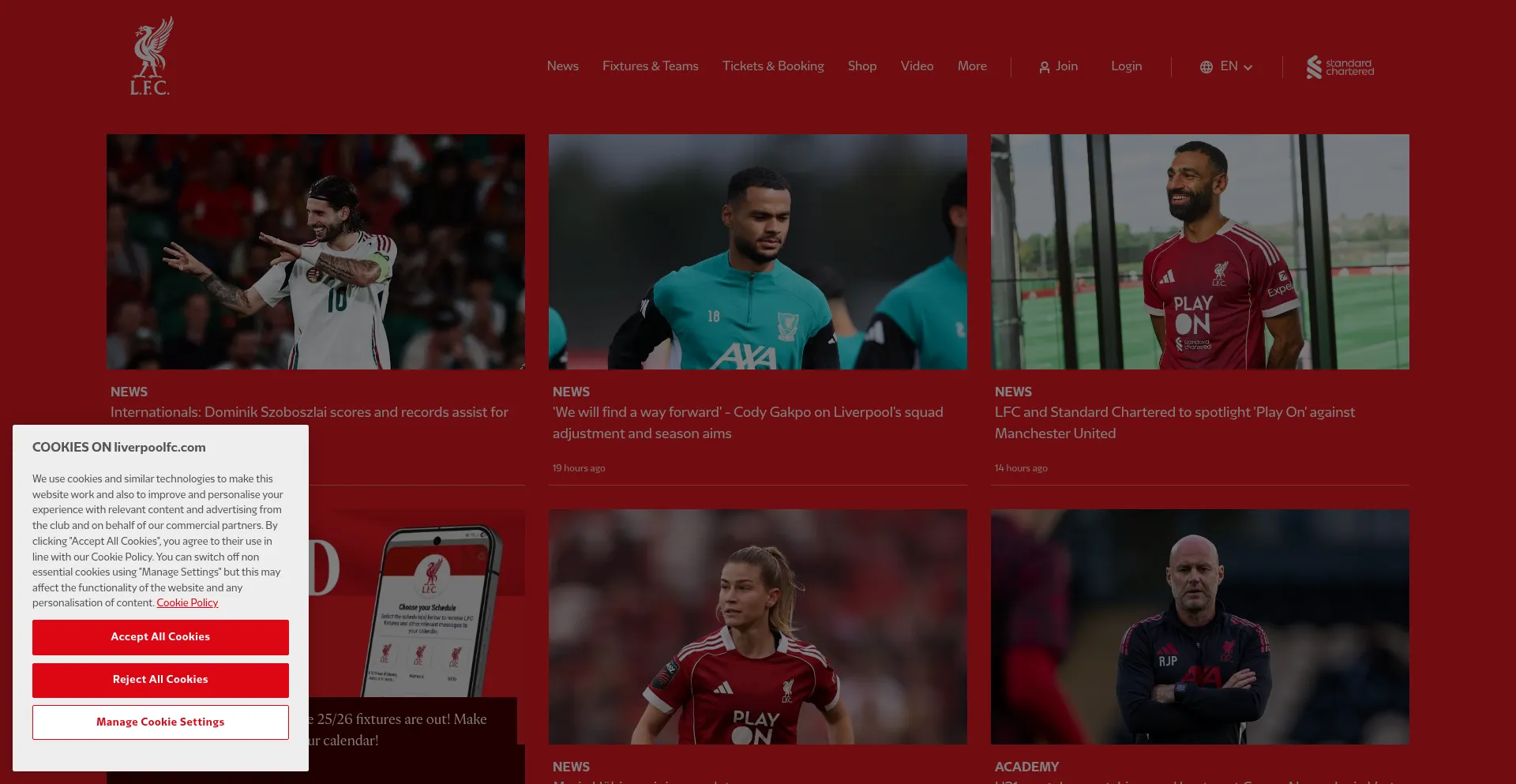 该网站实现符合GDPR或CCPA等隐私法规的cookie同意机制。这表明 liverpoolfc.tv 遵守数据保护标准并为用户提供对个人数据收集实践的控制。