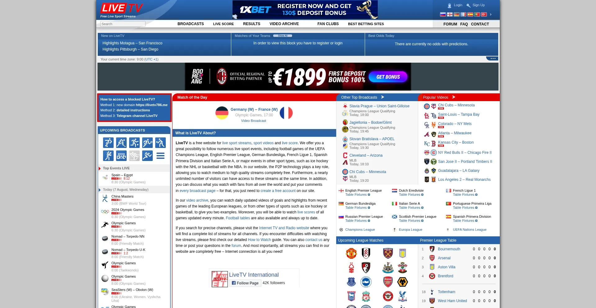 LiveTV is a free website for live sport streams, sport videos and live score.