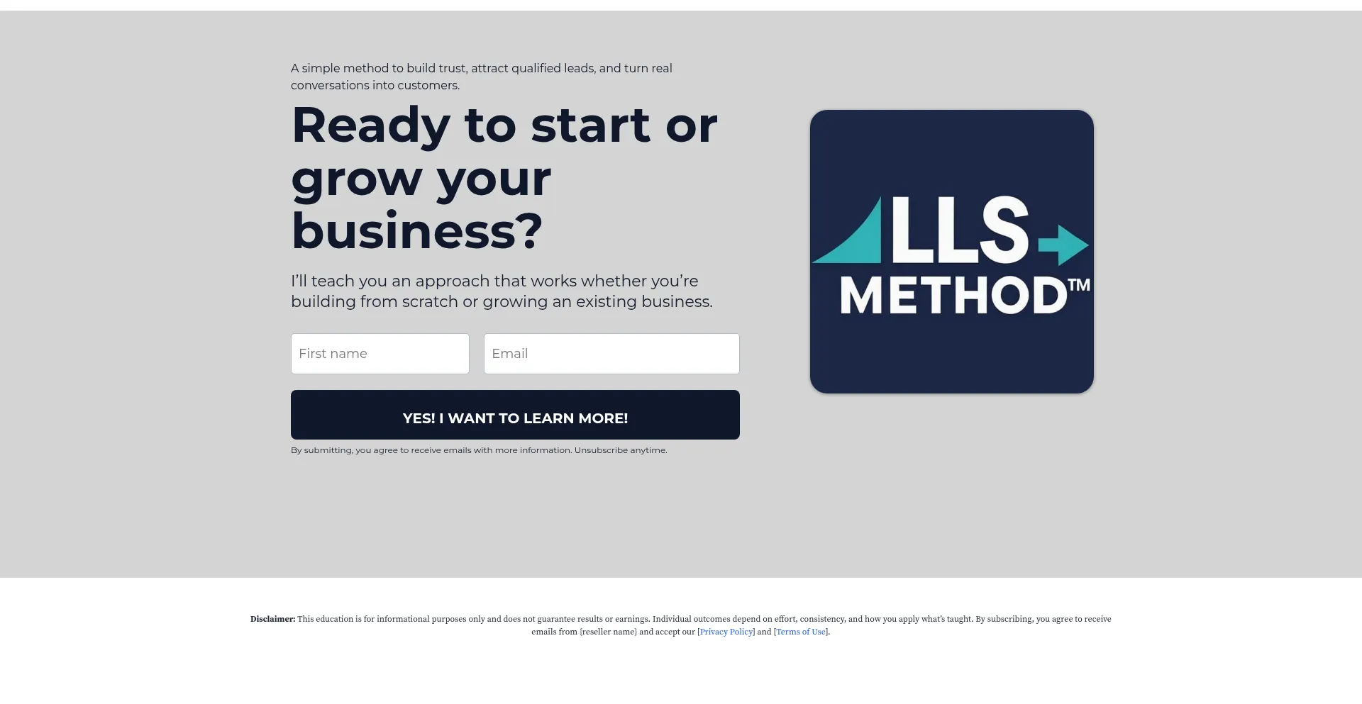 该网站实现数据收集表单,请求个人信息,包括姓名、电子邮件地址、电话号码或其他敏感详细信息。用户应验证 llsmethod.com 的合法性并在提交个人数据前查看隐私政策。
