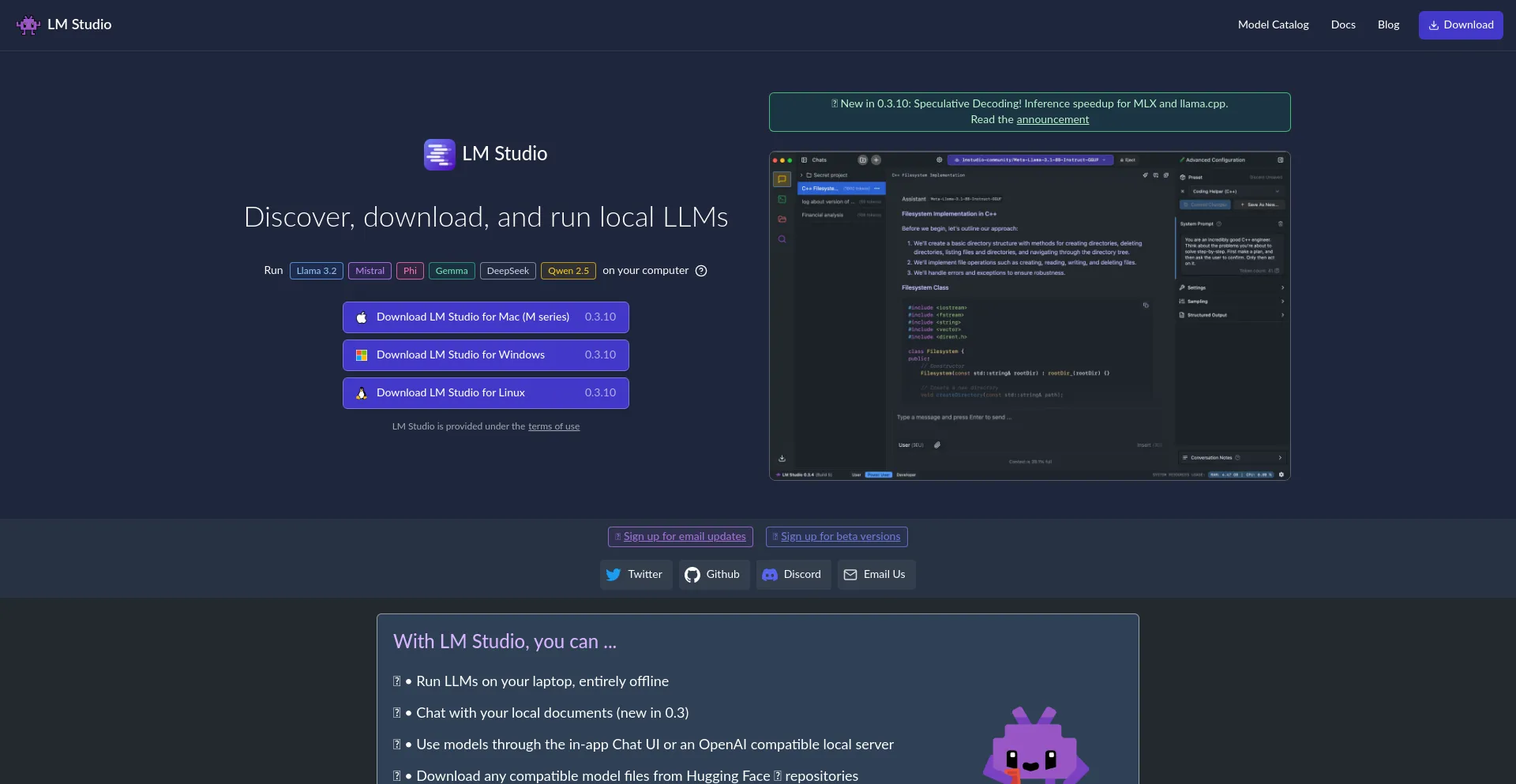 Run local AI models like gpt-oss, Llama, Gemma, Qwen, and DeepSeek privately on your computer.