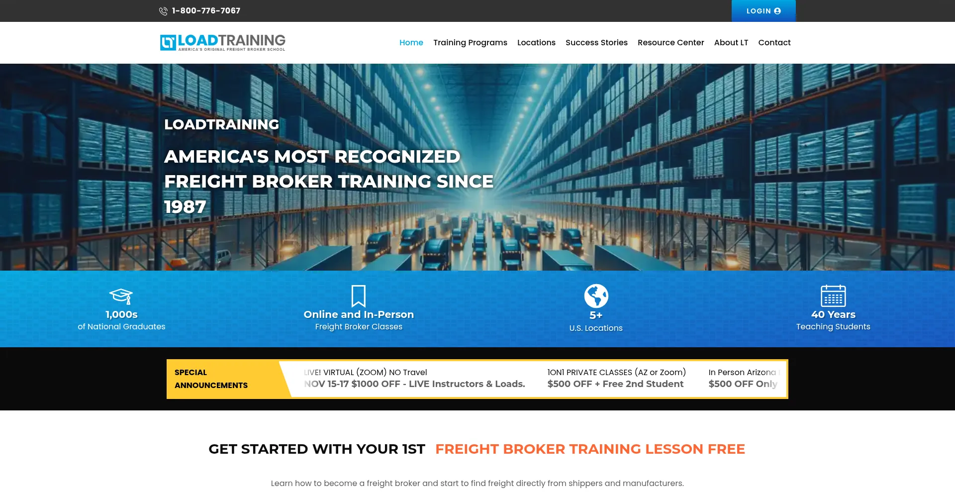 LoadTraining is America’s most recognized freight broker training school since 1987. We offer hands-on and online classes to meet your learning needs.