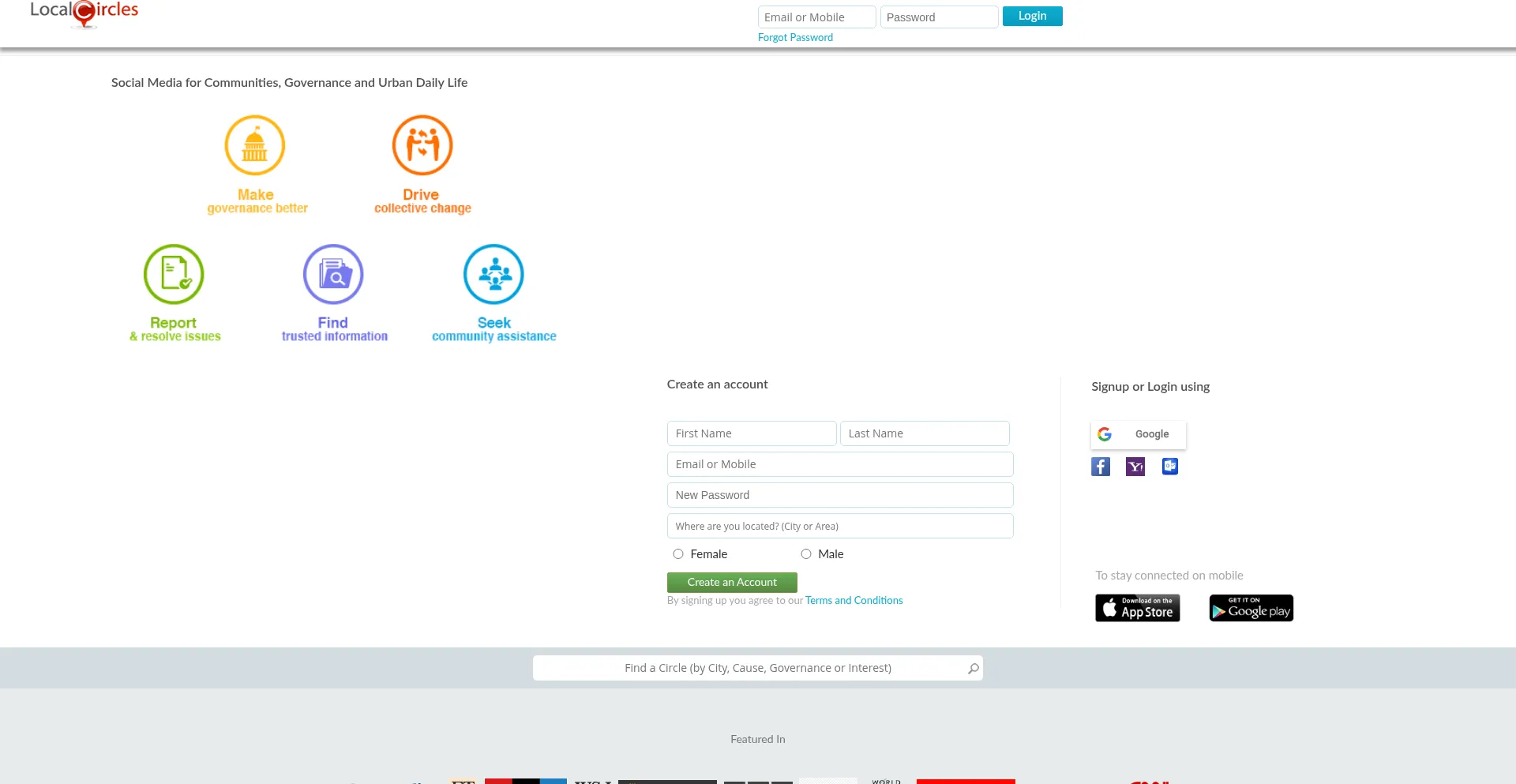 LocalCircles takes Social Media to the next level and makes it about communities, governance and urban daily life.It enables citizens to come together in communities or groups t...