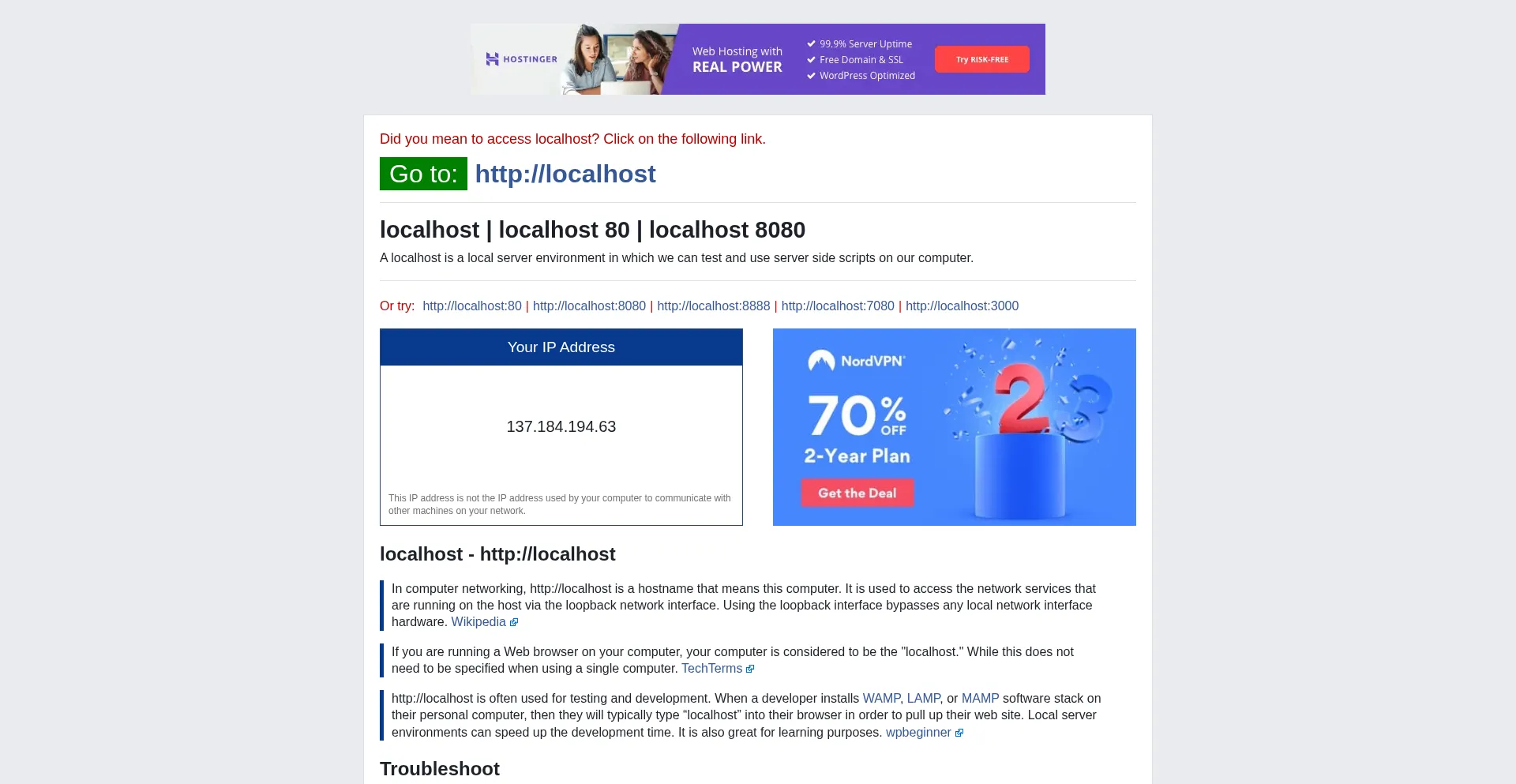 localhost | localhost 80 | localhost 8080 | http://localhost